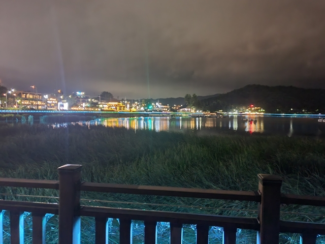 조용한 호숫가, 은은한 조명, 도시의 불빛들, 멋진 카페들.