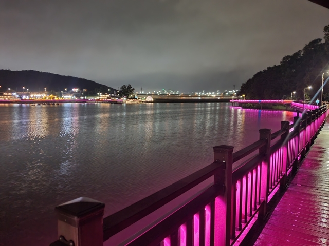 호수 한바퀴를 돌 수 있는 둘레길은 은은한 조명으로 야간에도 불편함 없이 산책하는데 도움을 줄뿐더러 주변 조명, 불빛, 풍경과 잘 어우러져서 분위기가 괜찮습니다.