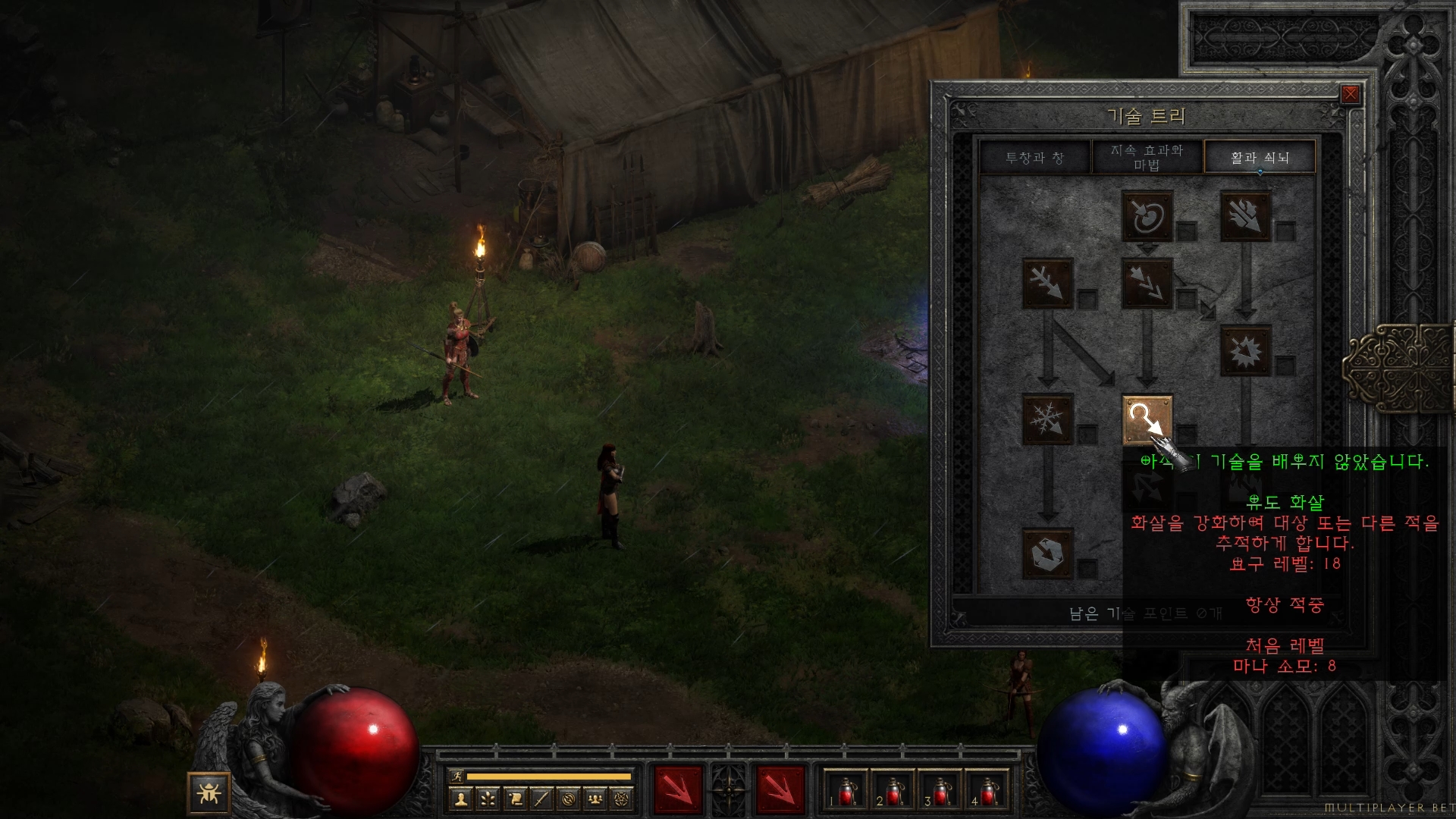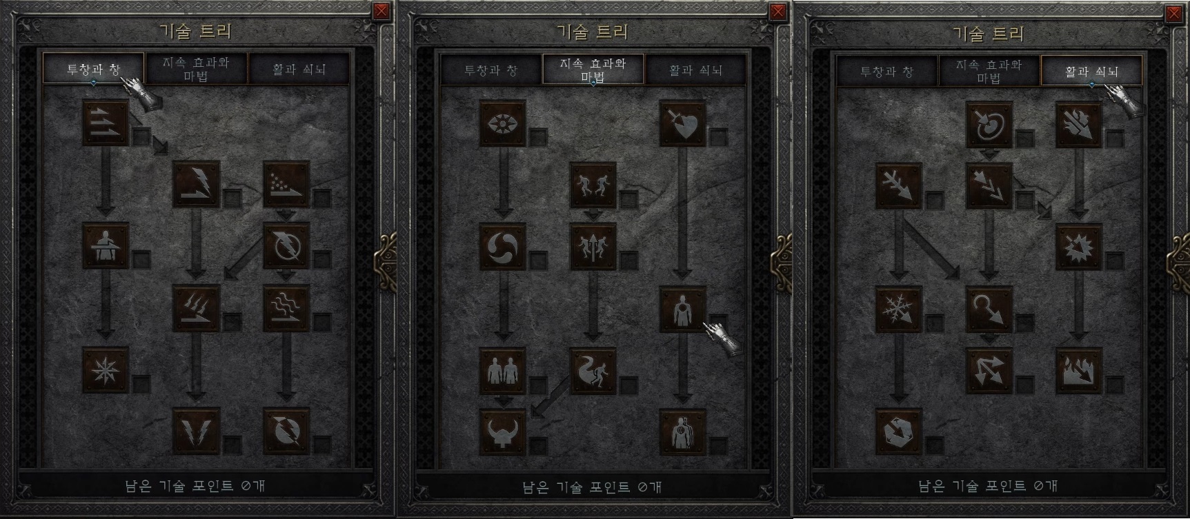 아마존의 경우 스킬이 투창(창), 활, 그리고 패시브 스킬로 구성이 되어있습니다.