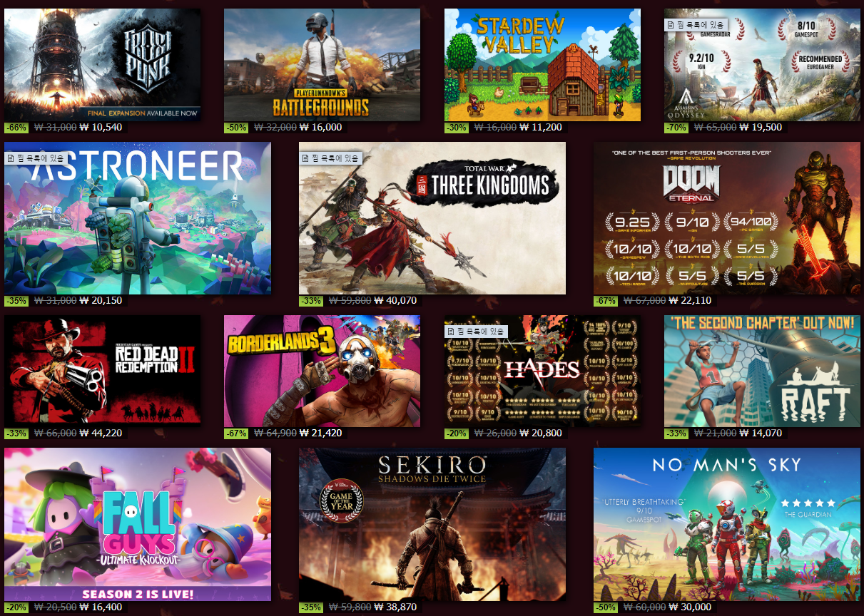 이번 스팀 가을 할인은 정말 제 기준으로 역대급 게임들이 정말 많이 쏟아져 나온 것 같습니다.