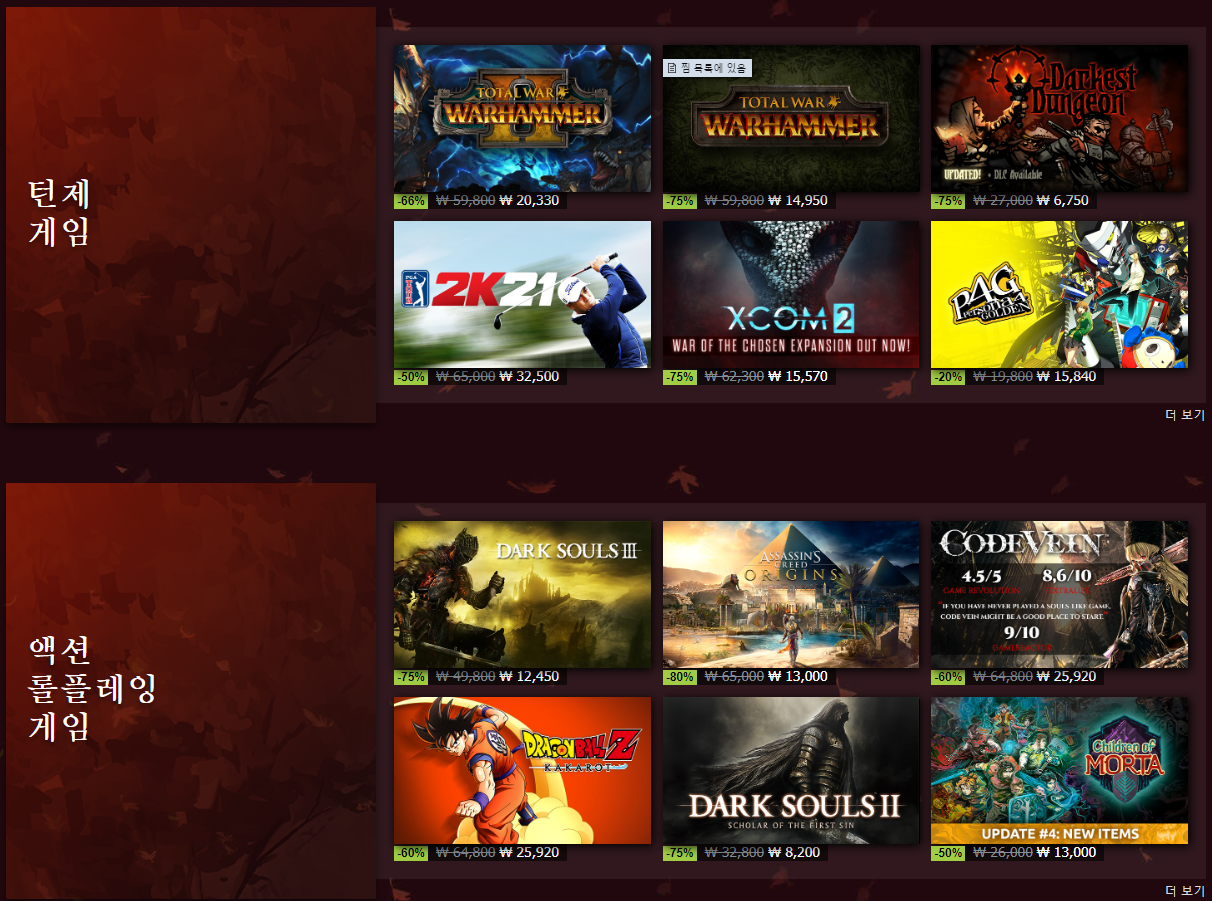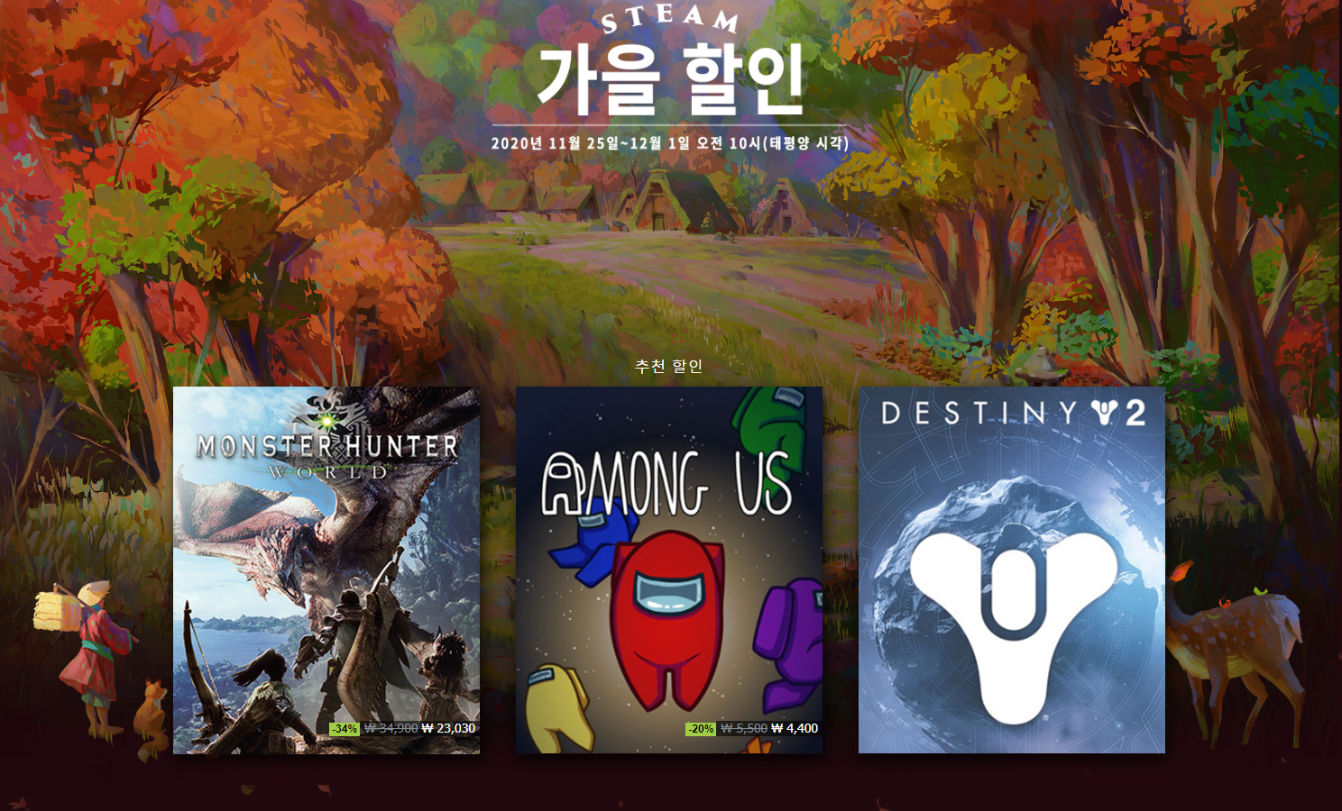 우연히 스팀을 들어갔는데 가을 할인을 하고 있더군요.