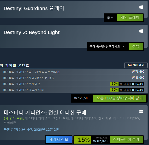 일부 DLC가 할인 중인 것 같습니다.
