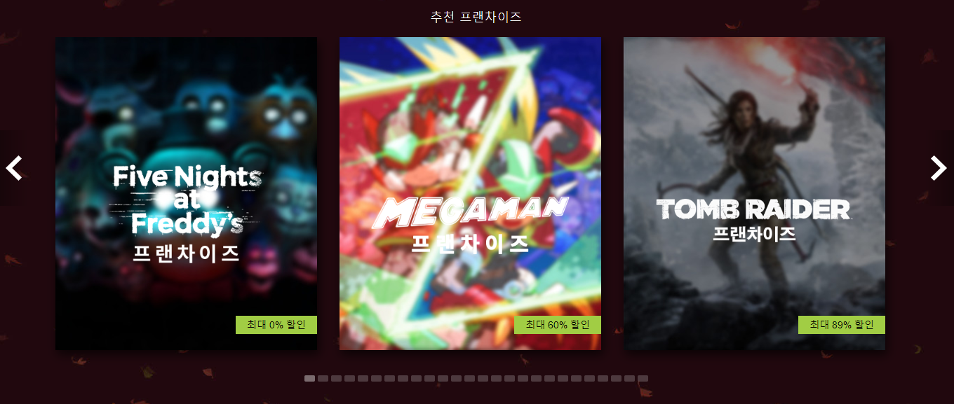 스팀에 로그인하게 되면 추천 할인으로 세 가지 게임이 먼저 소개가 됩니다.