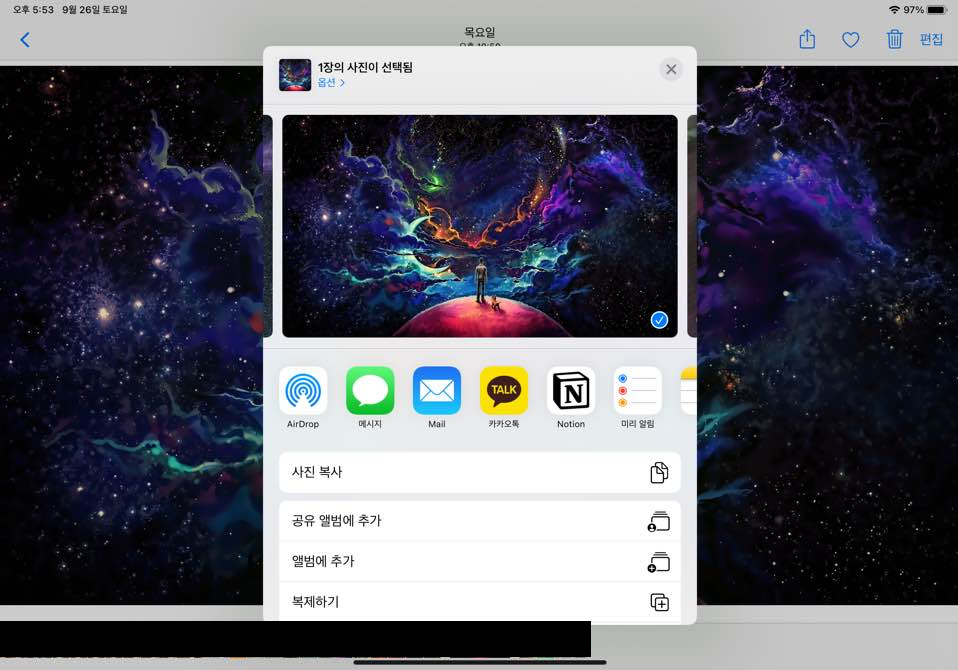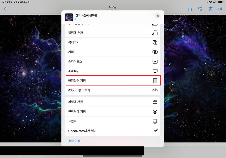 이 사진을 아이패드의 배경화면으로 설정해 보겠습니다.