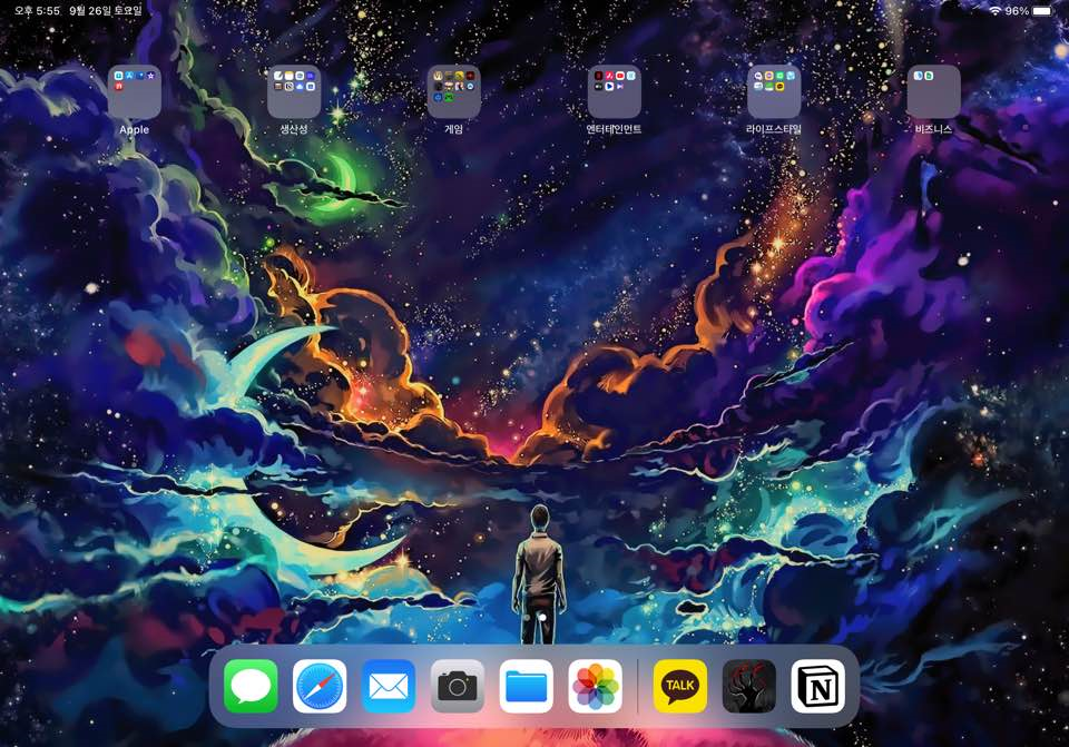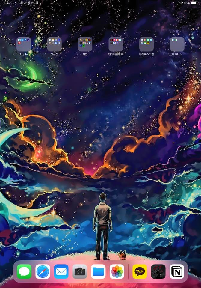 저는 아이패드에 이 배경화면을 적용예정이기에 아이패드를 열어 카카오톡을 실행하겠습니다.
