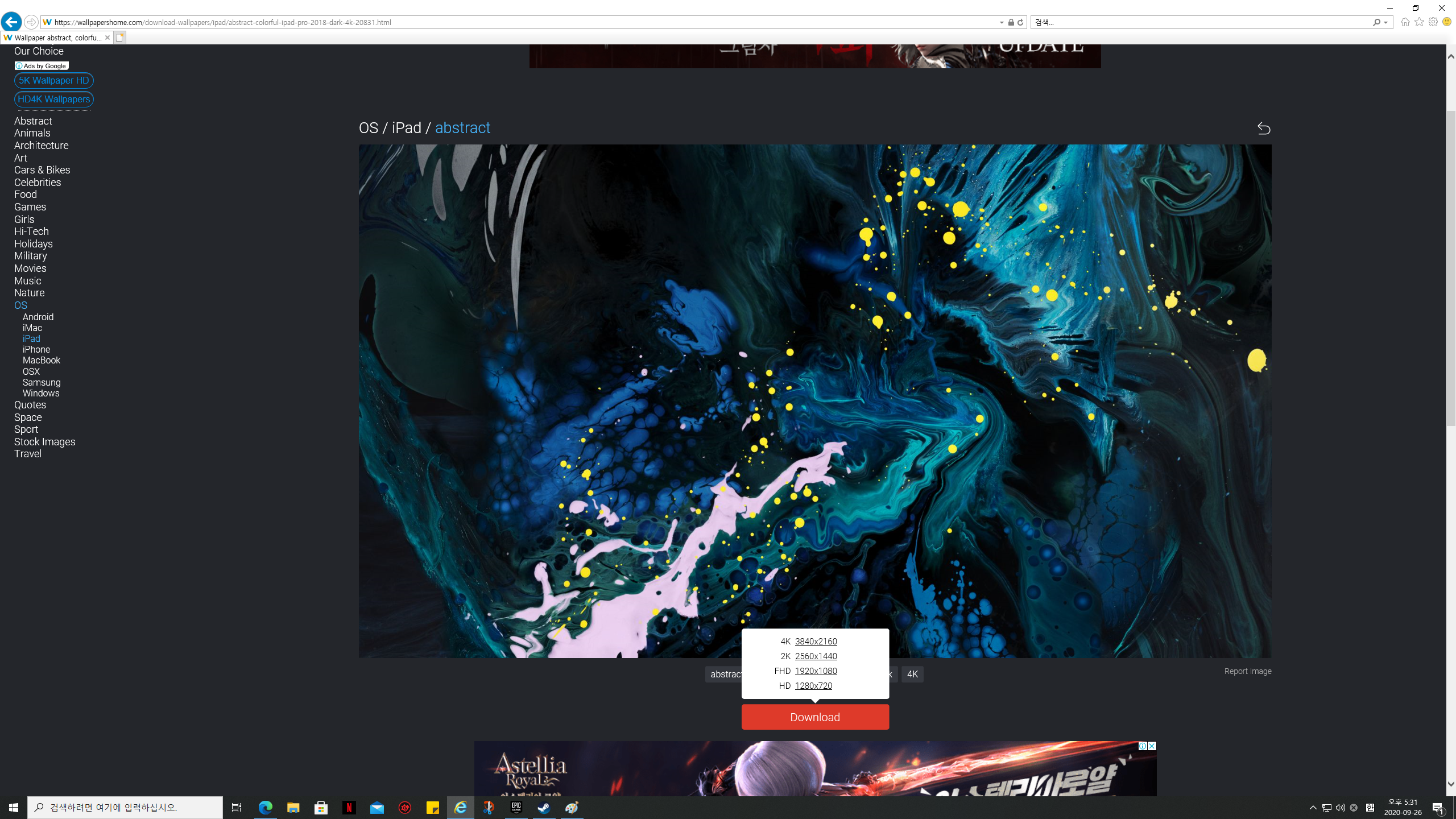 거기에 왼쪽의 카테고리를 통해 내가 원하는 주제의 배경화면들을 모아서 볼 수도 있습니다.