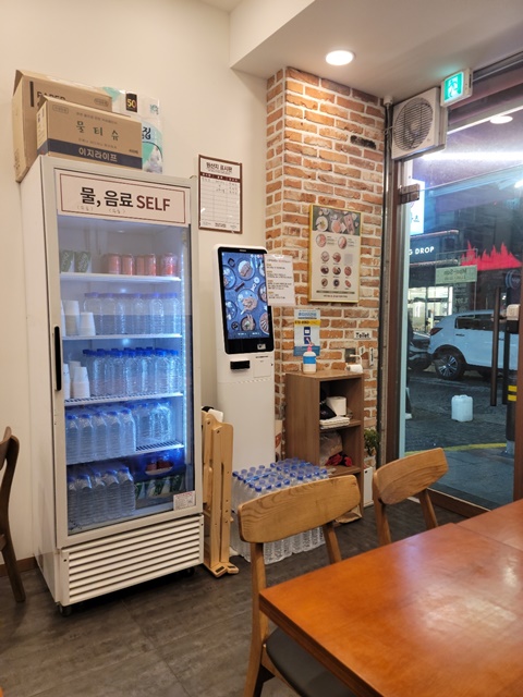 무인컨셉의 가게고요. 그래서 입구에는 코로나 안심콜과 키오스크 기기가 비치되어 있습니다.