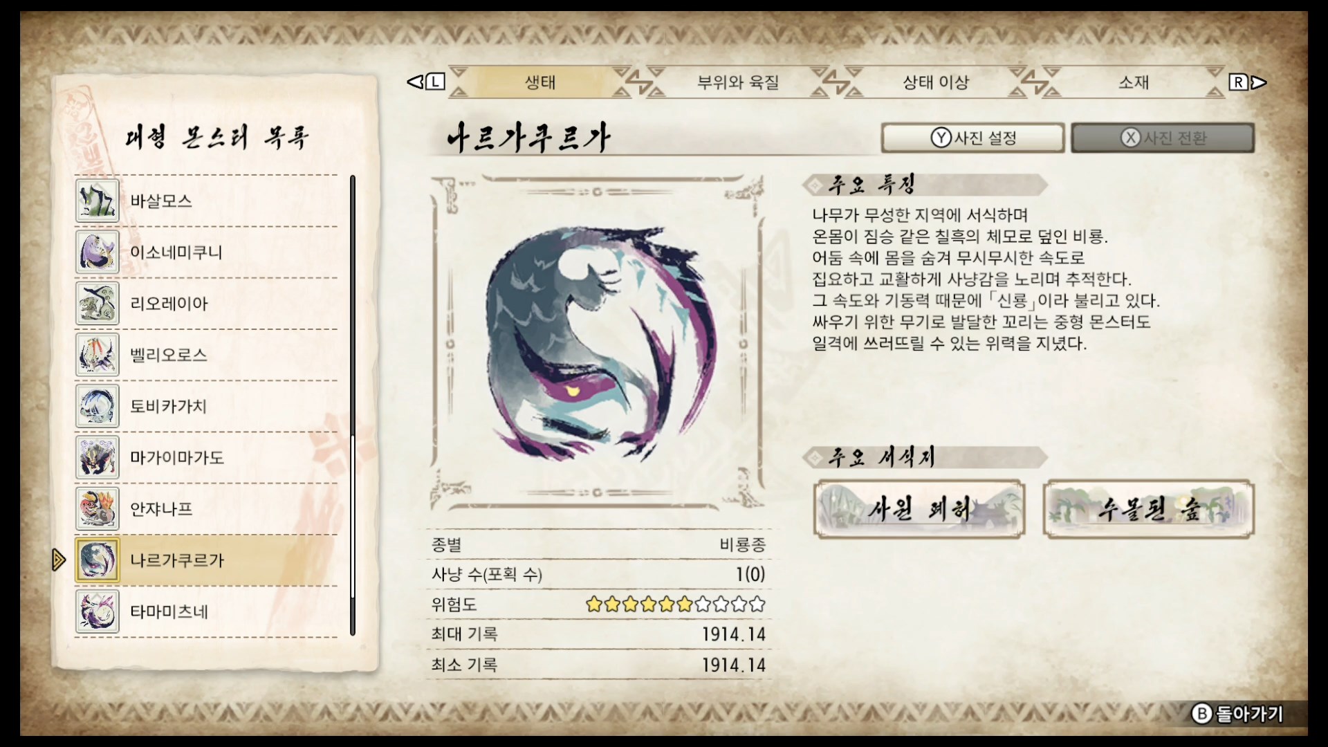 나르가쿠르가의 생태 정보입니다.