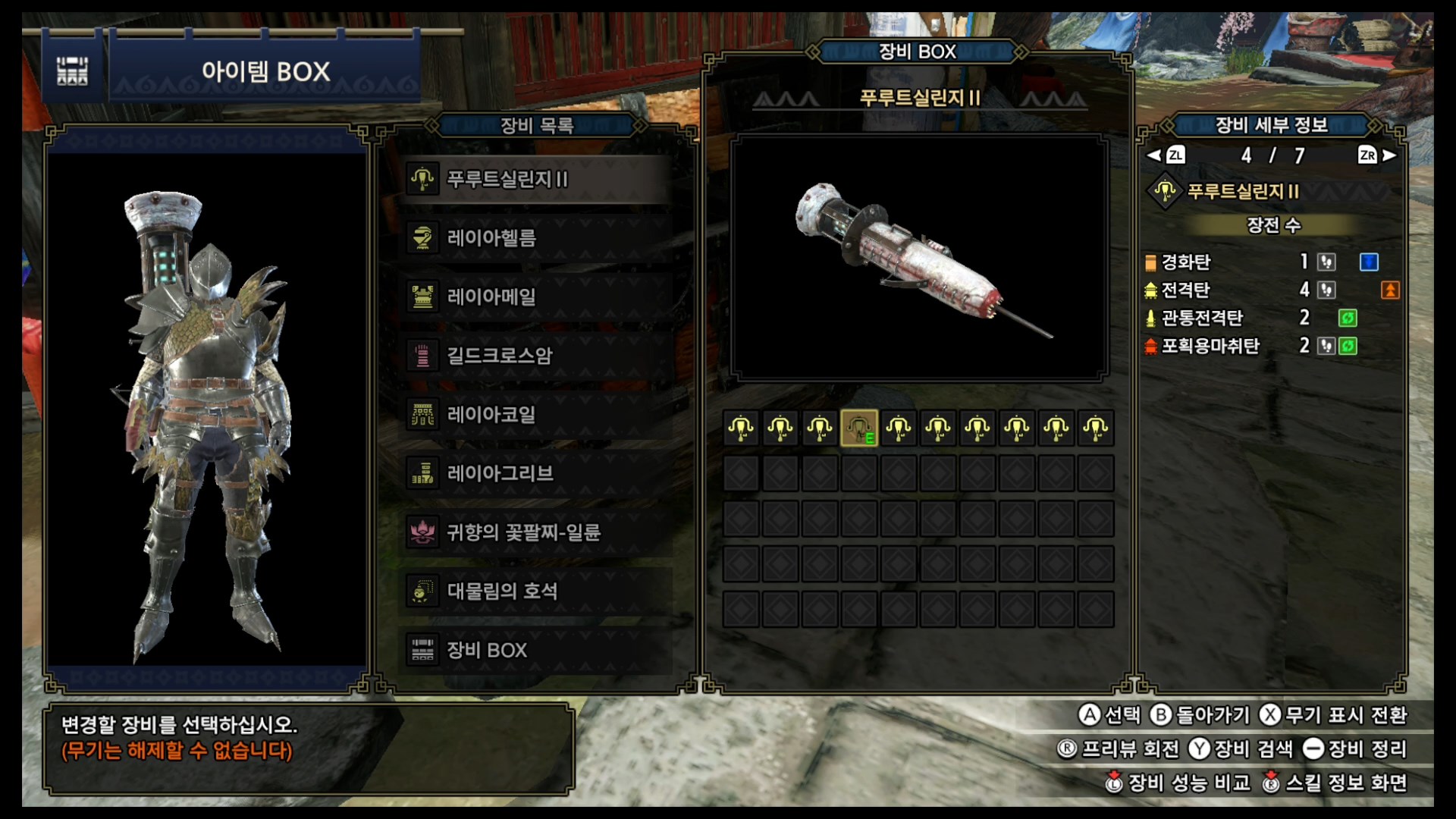 번개에 약하다는 걸 알았으니 무기는 전격탄과 관통 전격탄, 무려 번개 속성 탄환을 두 개나 쓸 수 있는 푸루트실린지II를 들고 가도록 하겠습니다.