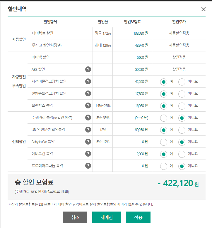 DB는 Tmap 운전 점수로만 할인을 적용해 주네요.