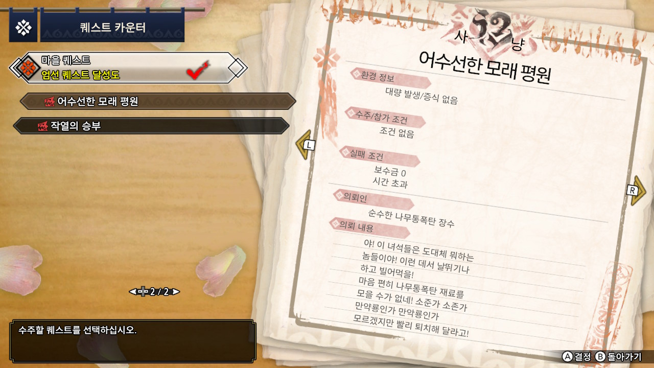 이번 미션에서는 처음으로, 격투장이 아닌 필드에서 두 마리 몬스터를 토벌하는 미션이 되겠습니다.