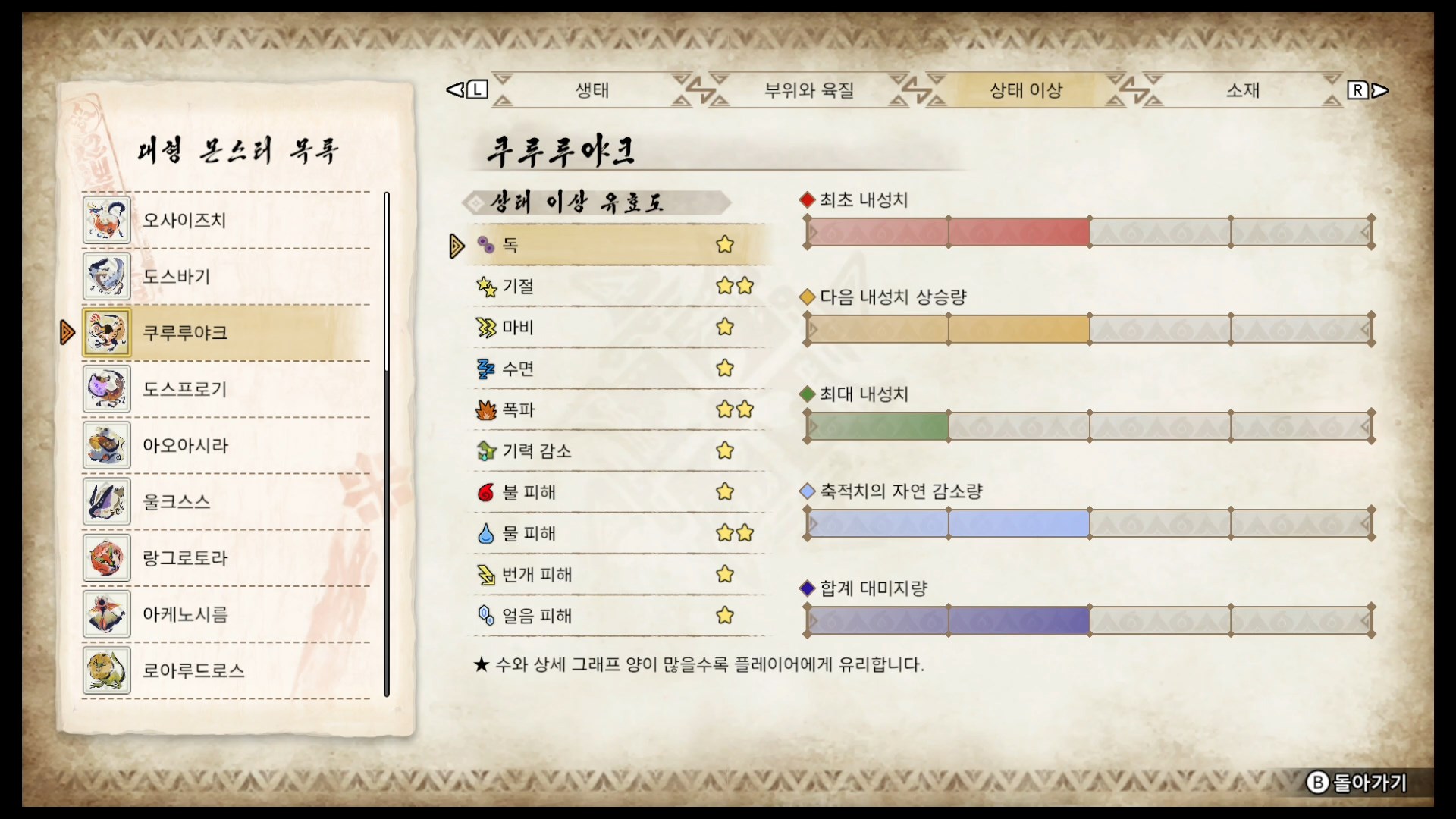 둘다 직선형 공격패턴이 많아서 상대하기가 어렵지 않은 몬스터인데다가 쿠루루야크의 경우 저등급 몬스터다 보니 할 만한 난이도입니다.