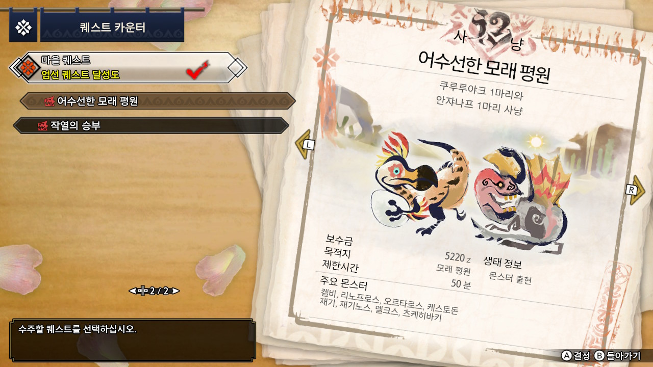 오늘은 몬스터 헌터 라이즈 마을 5성 미션, 어수선한 모래평원 포스팅을 진행하겠습니다.
