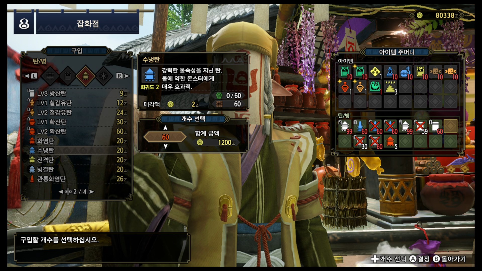 둘 다 물 속성에 약하니 무기는 수냉탄을 사용할 수 있는 로아루슬링II을 고르도록 하겠습니다.