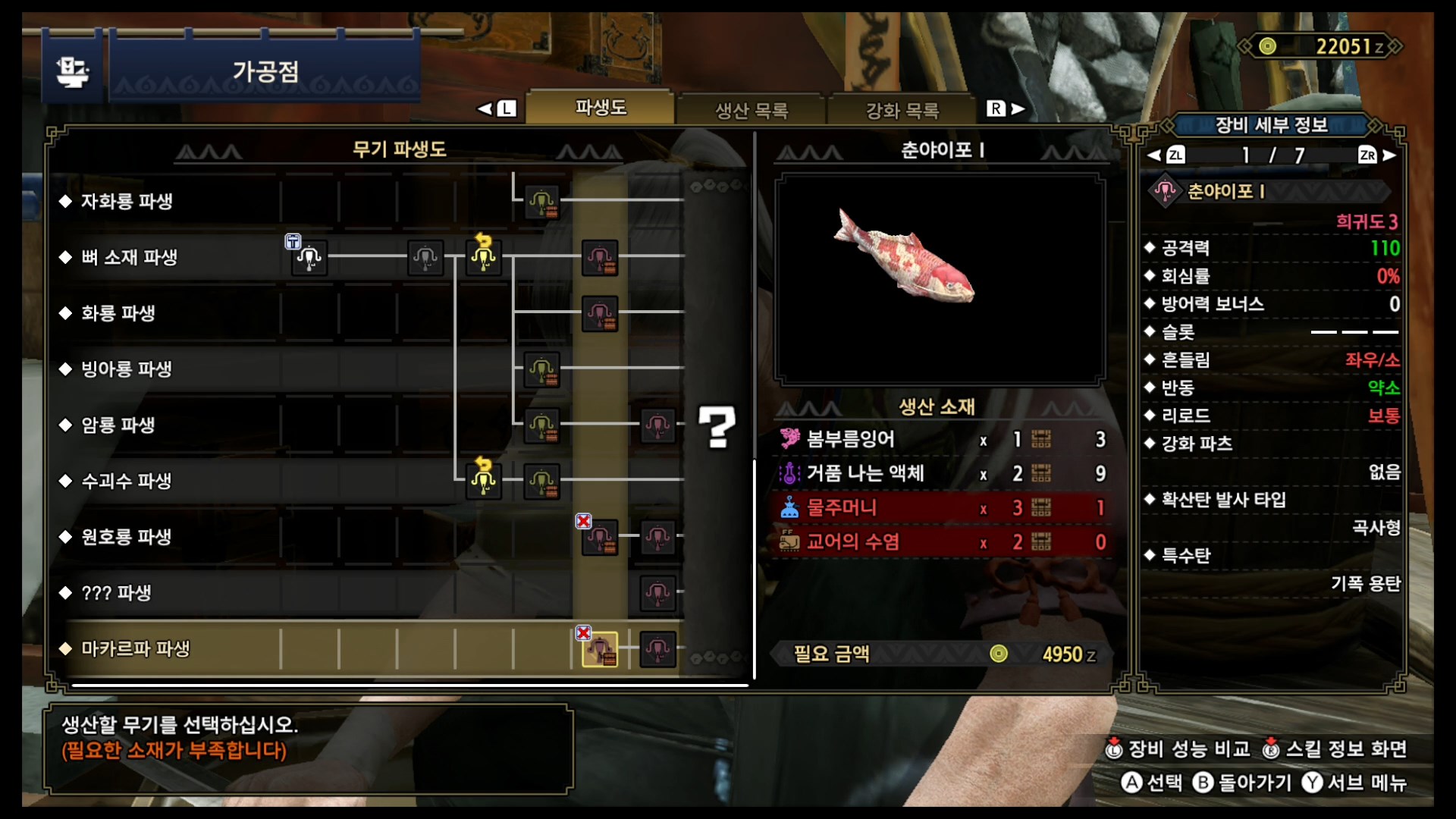특히 이 소재 구하기가 좀 까다로운데 마가이 마가도의 등뼈를 부위 파괴해야 합니다.