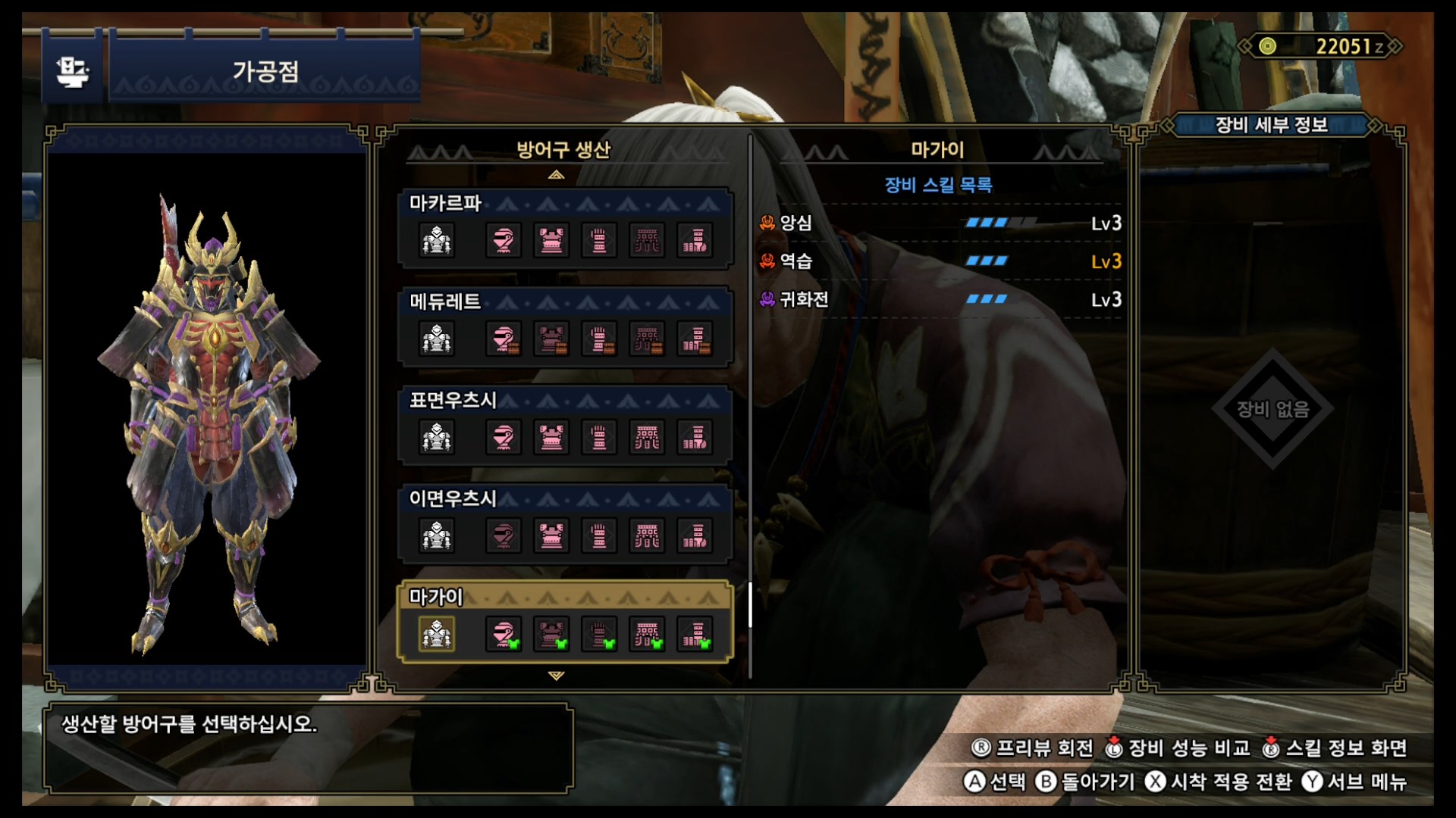 마가이마가도가 나름 스토리상 중요한 몬스터고 왜색이 짙긴 하지만 방어구도 나름 간지가 있어서 제작해 보았습니다.