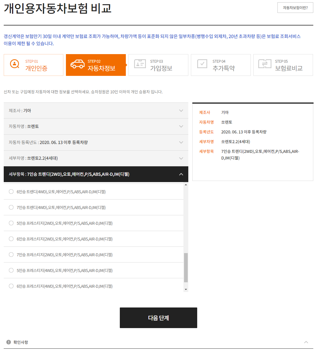 보험가입정보나 차량의 종류에 따라서 보험료가 달라지니까요.