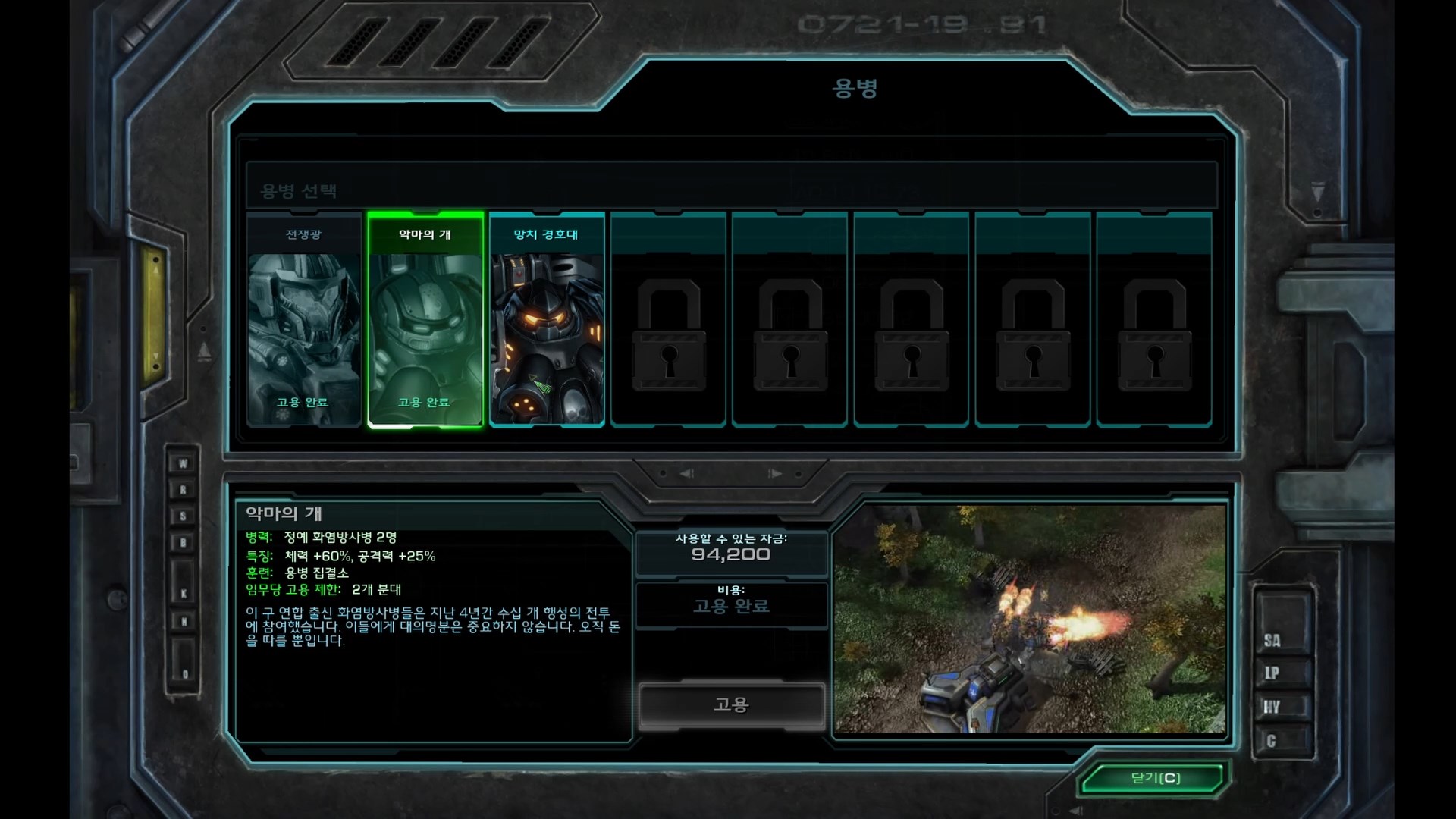 다만 이번에 얻은 자금을 활용해 악마의 개(정예 화염방사병 2명)을 고용하였습니다.