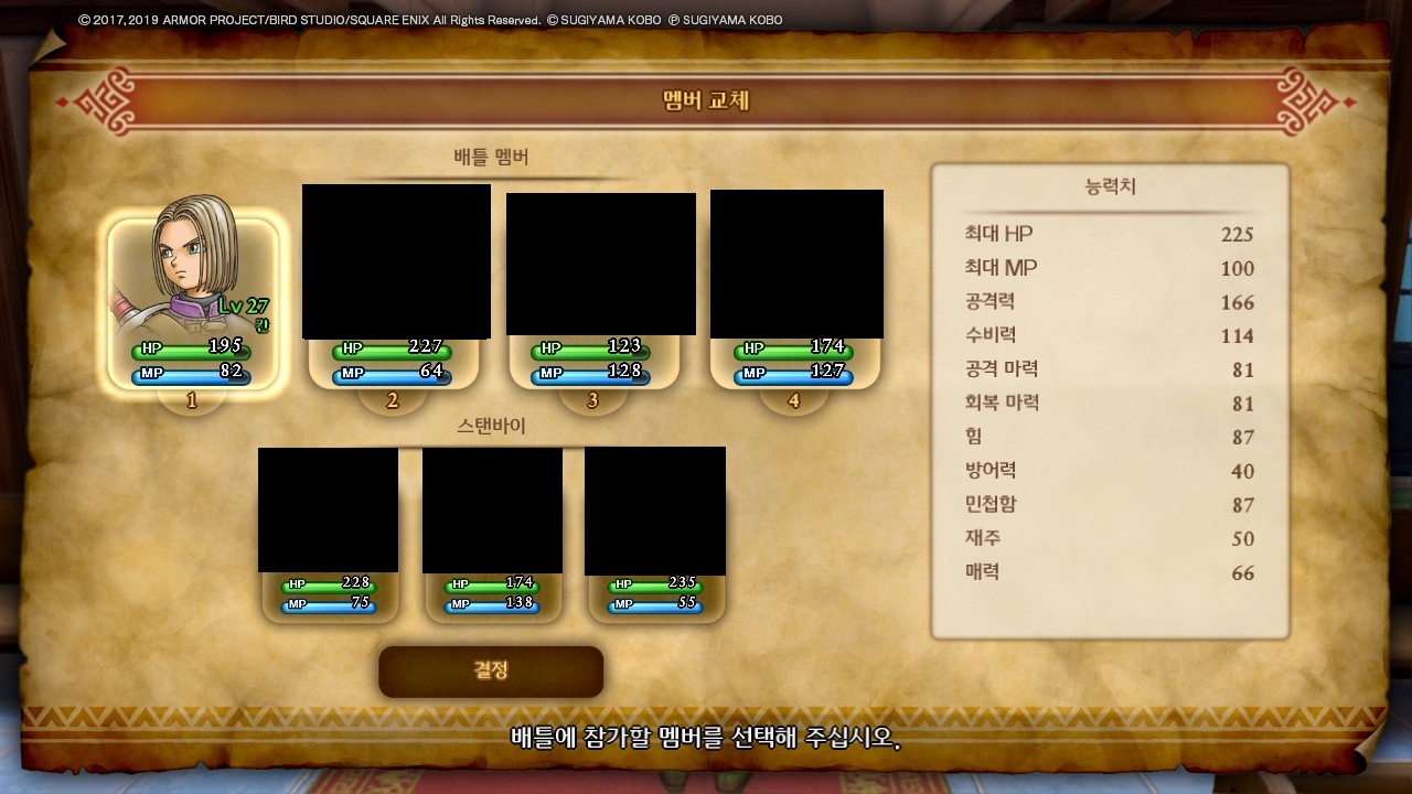 동료의 수가 훨씬 많기 때문에 동료 중 4명을 골라서 전투에 참여해야 합니다.