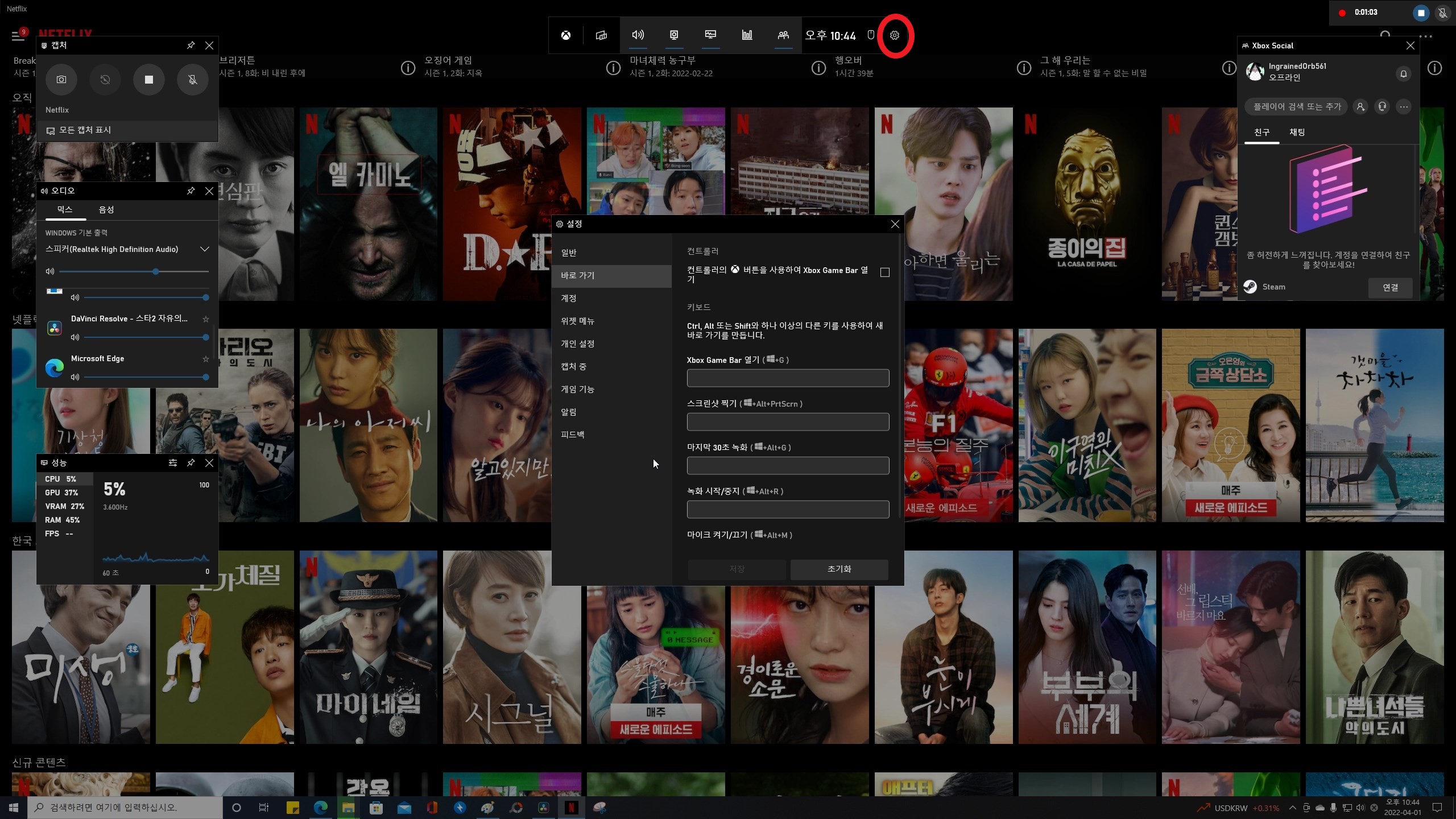 윈도우 기본 녹화(X-Box Game Bar)