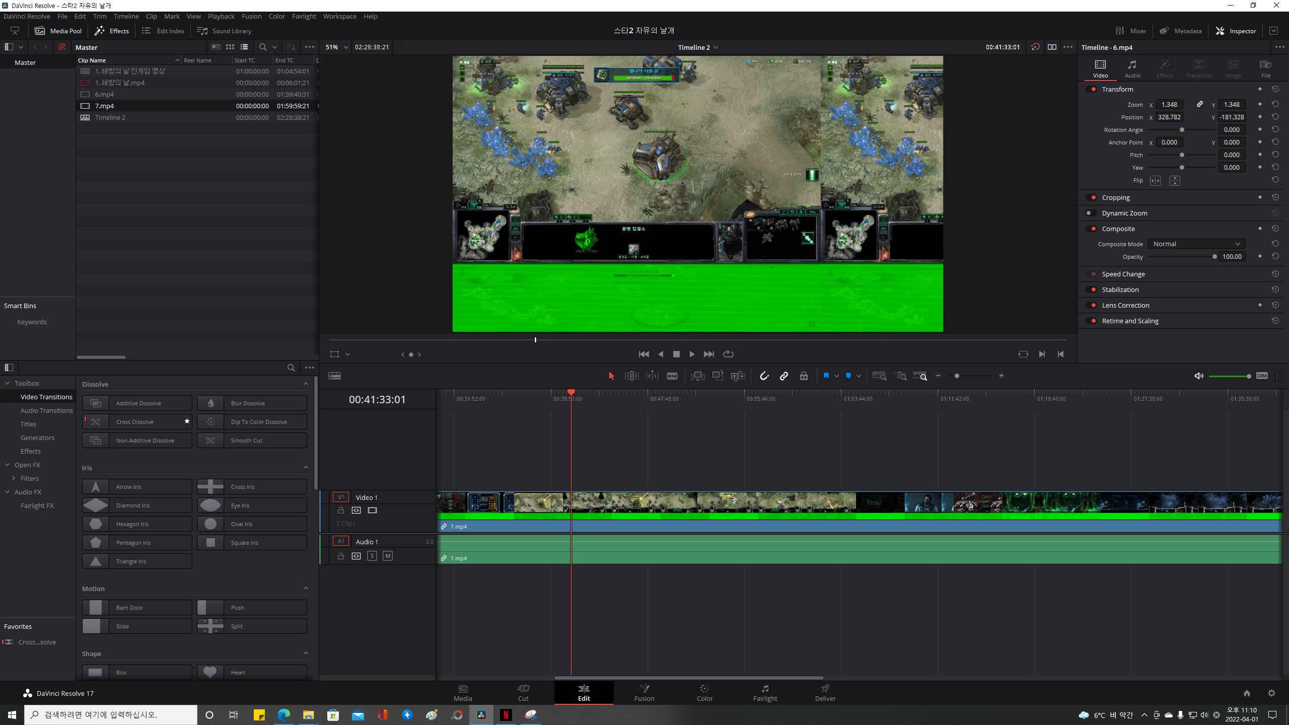 저는 동영상 편집을 다빈치 리졸브라는 프로그램을 쓰는데요.