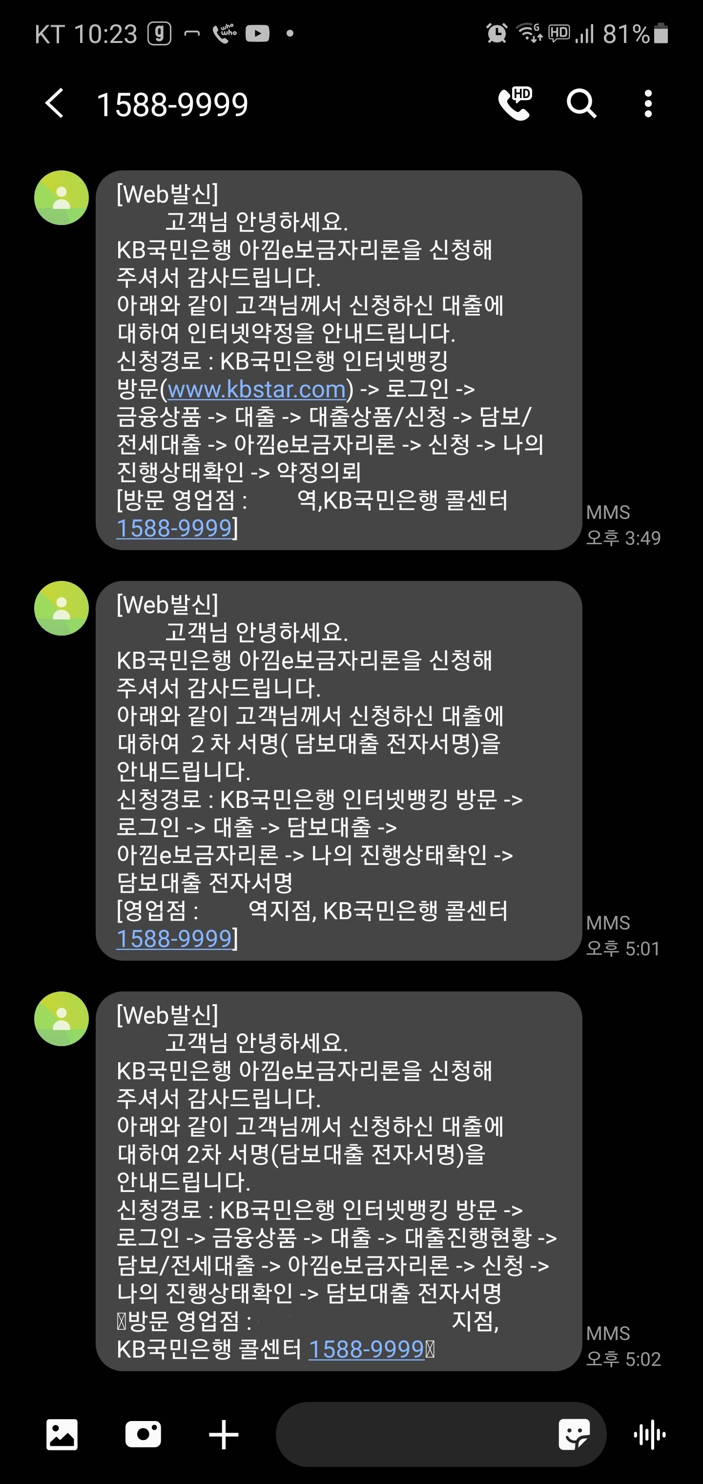 그렇게 전화상 문의를 해도 저 상태가 변경이 안돼서 대출실행 날까지 진짜 바들바들 떨었습니다.