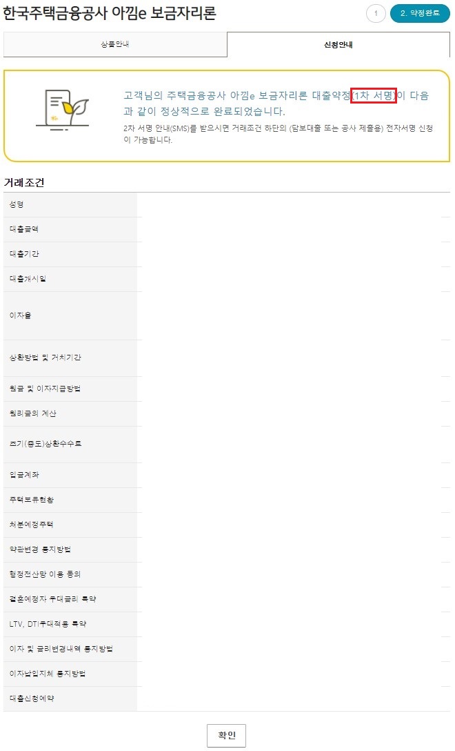 약정 완료를 클릭해 보니 "1차 서명"이 완료되었다고 분명히 명시가 되어있습니다.