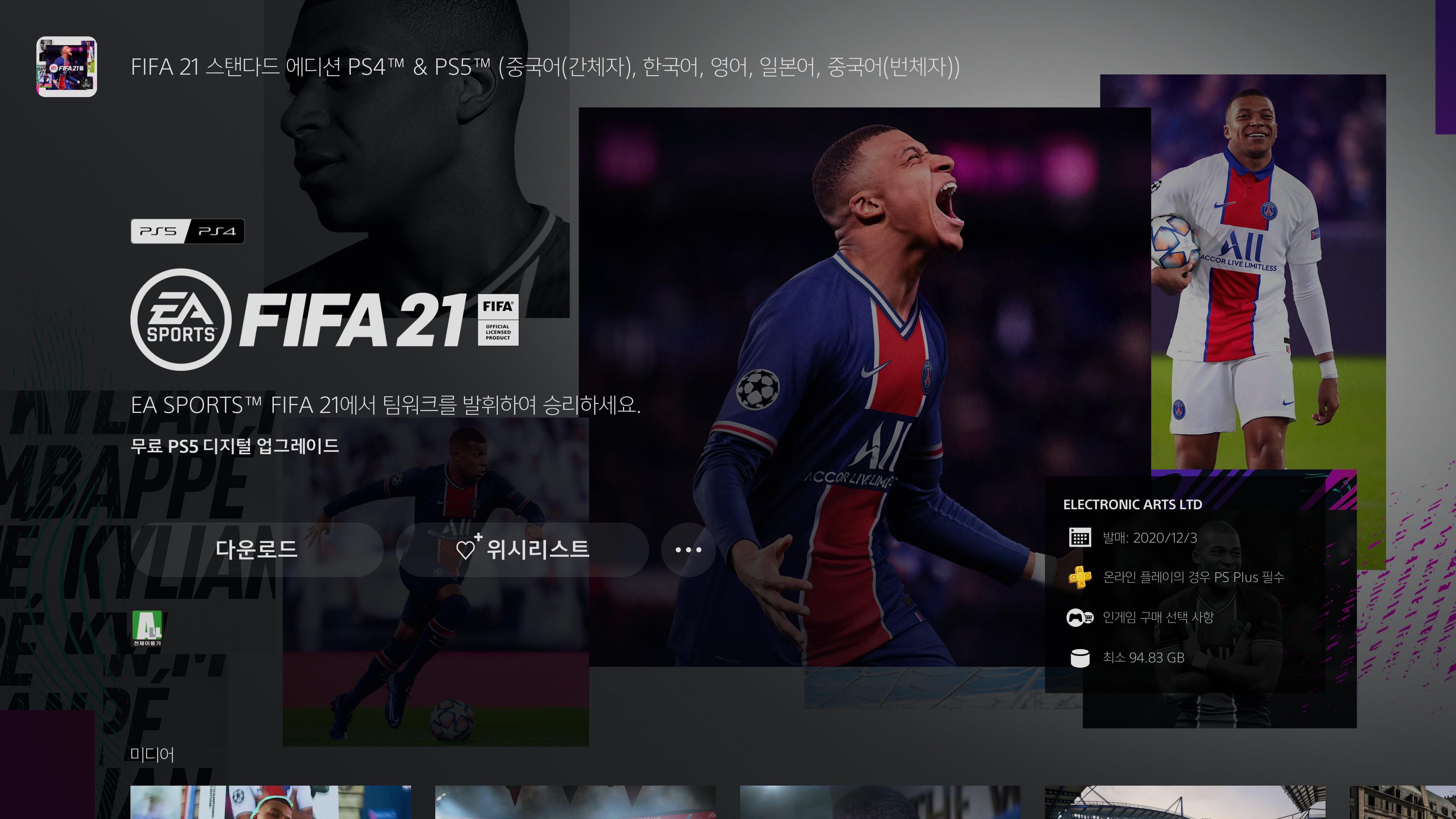 피파21의 경우 저는 플스4 때 플스4 버전을 구매했었는데요.