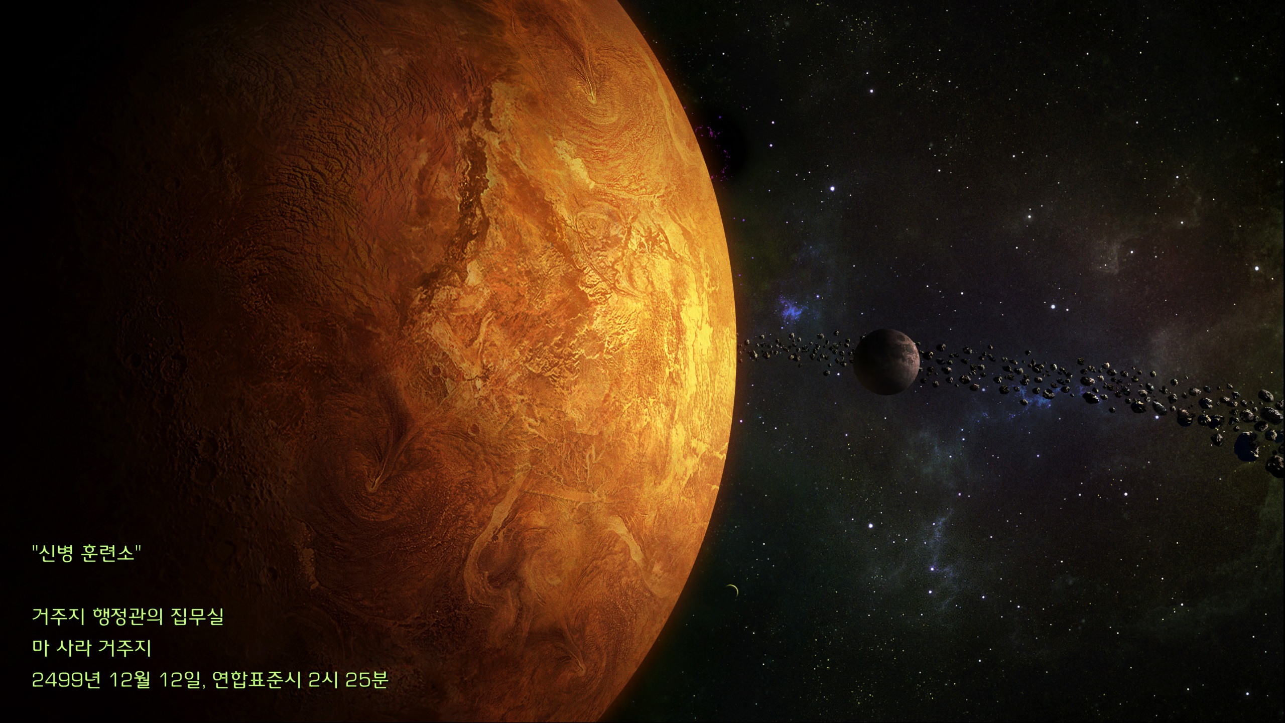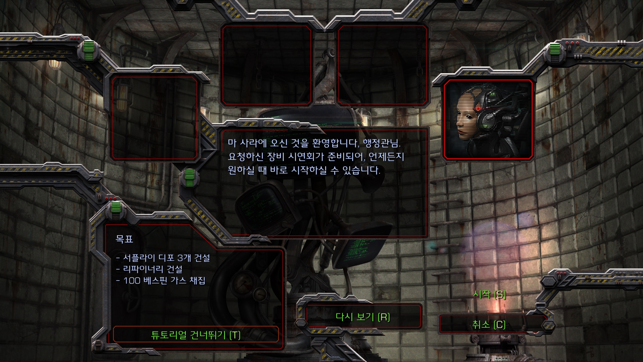 게이머는 테란연합의 행정관으로 플레이를 하게 됩니다. 시작은 마사라 행성이네요. 스타 캠페인을 해보신 분들에게는 익숙한 이름입니다.