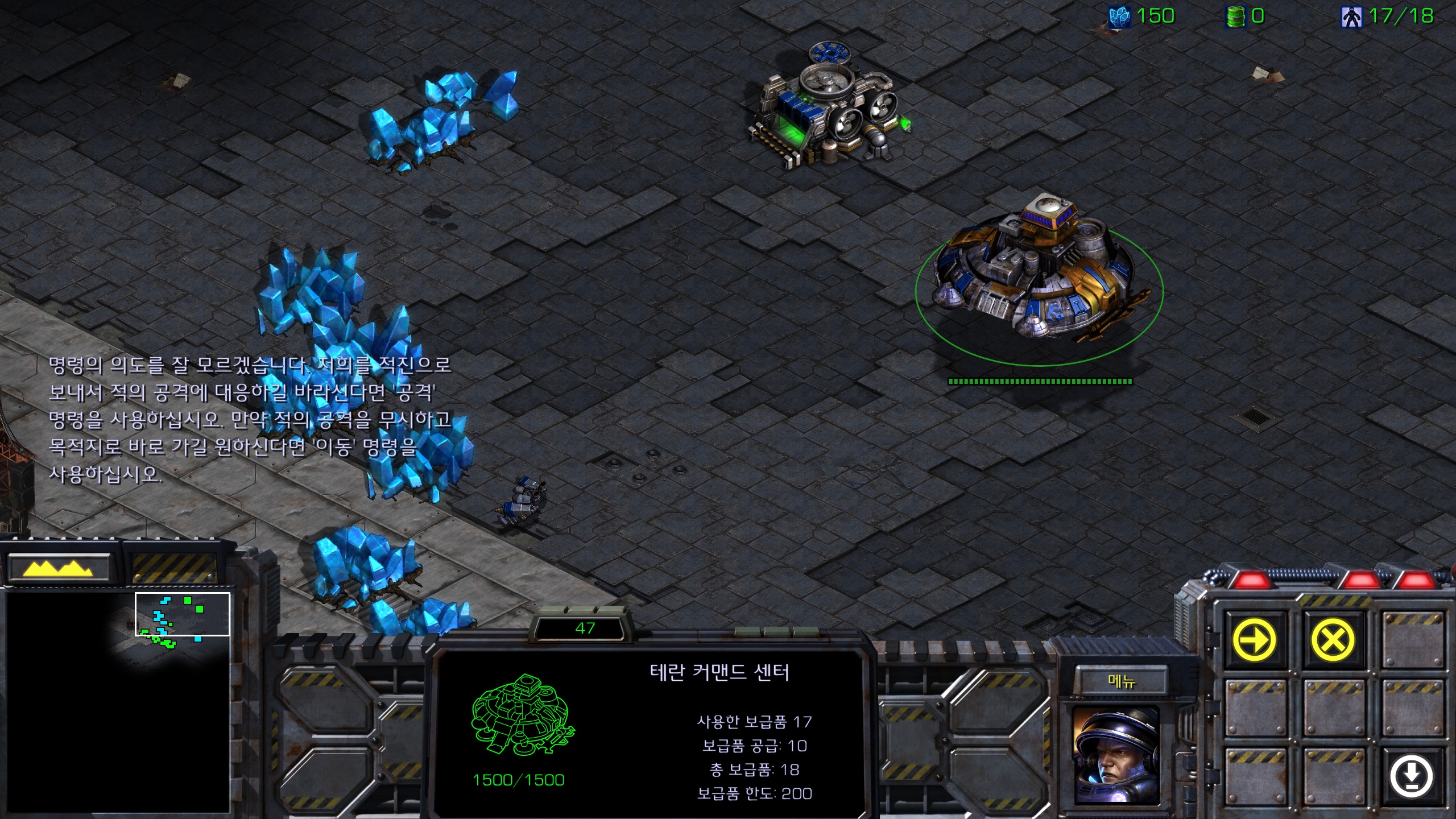 커맨드가 너무 멀리 있어 가까이 붙이는데 이등병이 조언을 해주네요. 딱히 도움되는 조언은 아닌 것 같습니다.