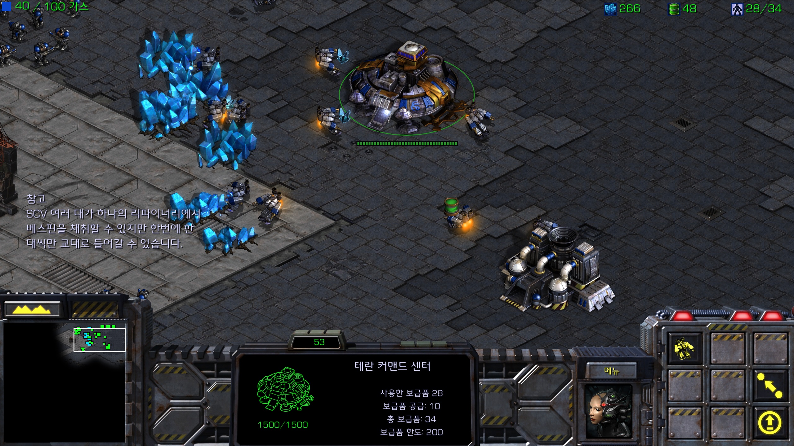 인구가 간당간당하니 먼저 서플라이를 짓고 일꾼을 뽑겠습니다. 클리어하려면 서플라이 3개를 지어야 합니다.