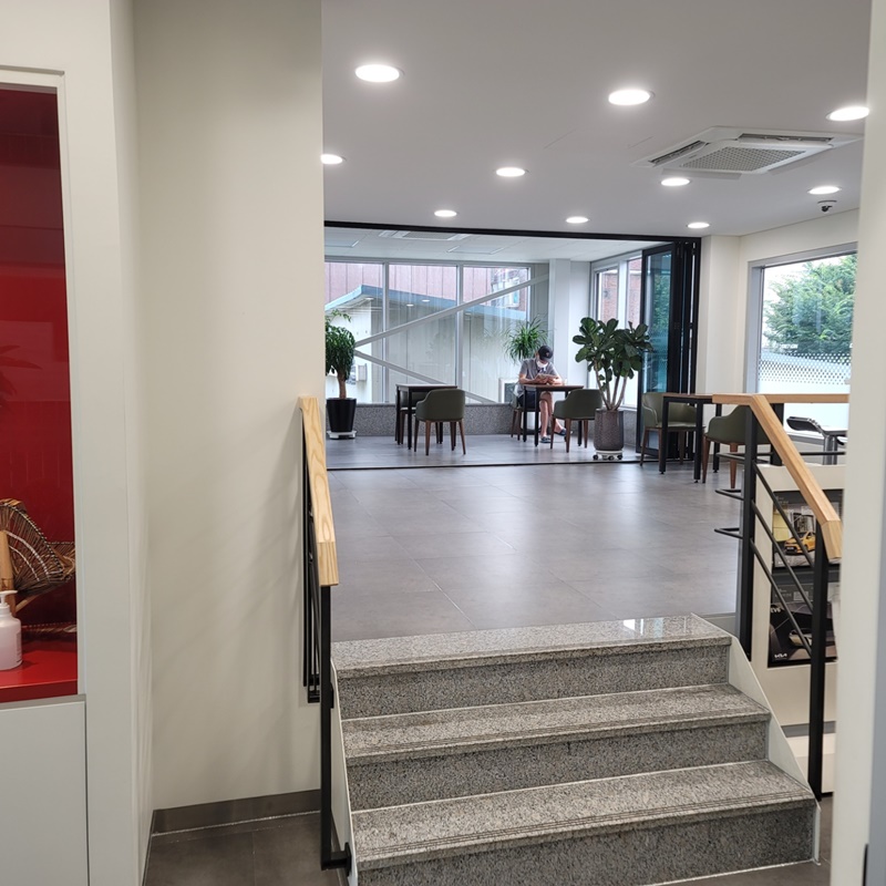 2층에는 쉼터가 있는데 간단한 음료도 비치되어 있고 공간도 넓고 조용해서 게임이나 핸드폰 하면서 기다리기 좋습니다.