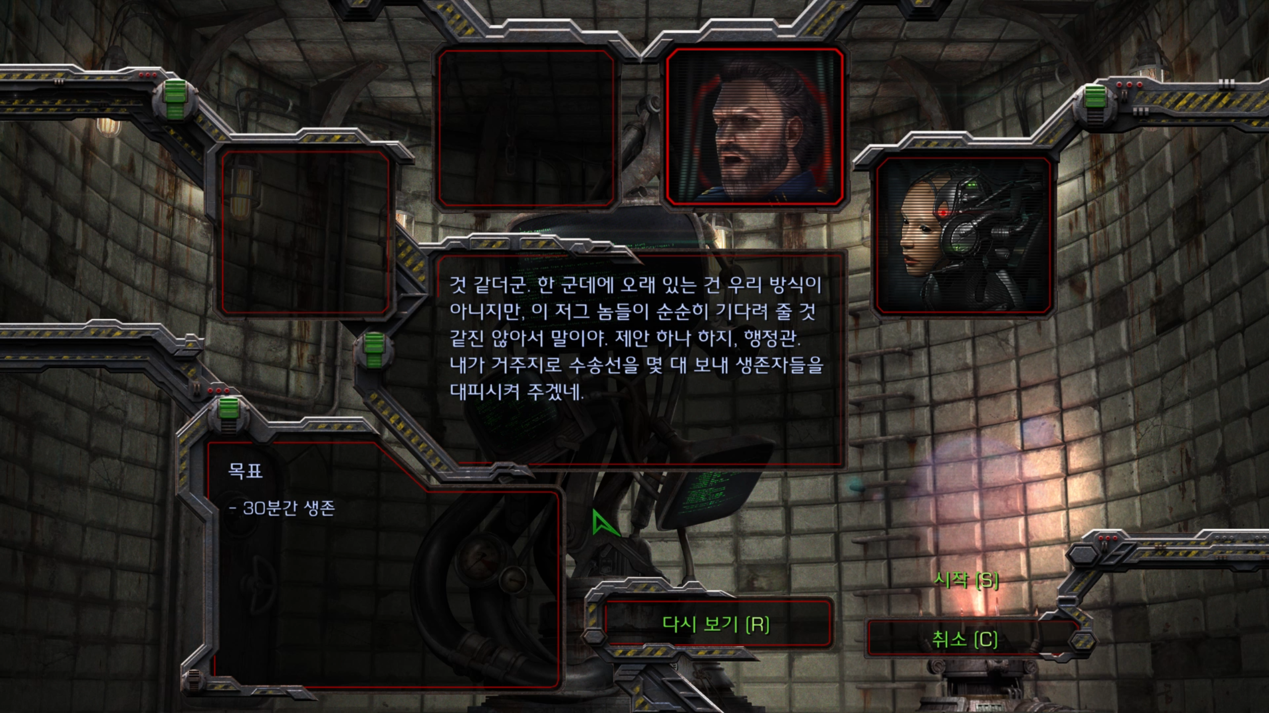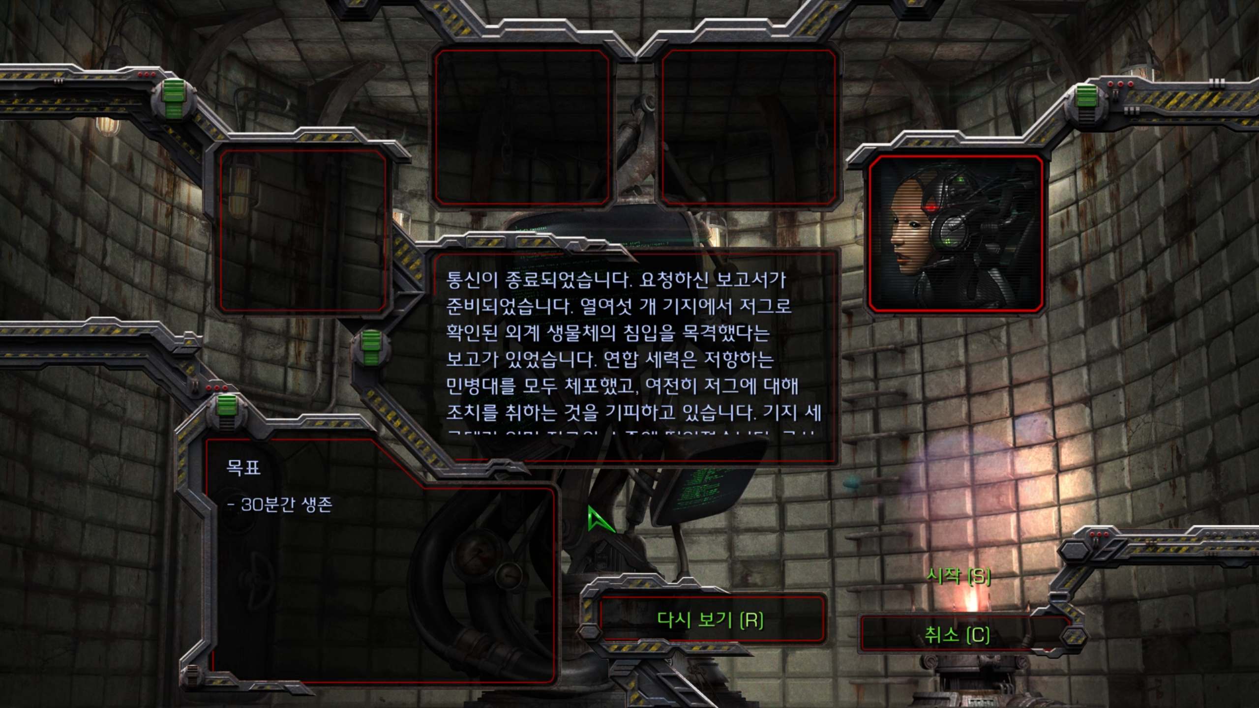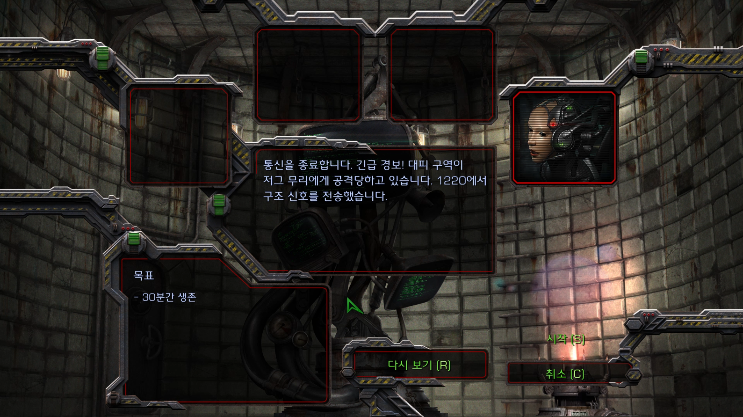 처음 등장하는 타임어택 미션입니다. 30분 동안 버티면 승리입니다. 시작하면 두 개의 입구가 있으니 벙커를 도배해서 막아봅시다.