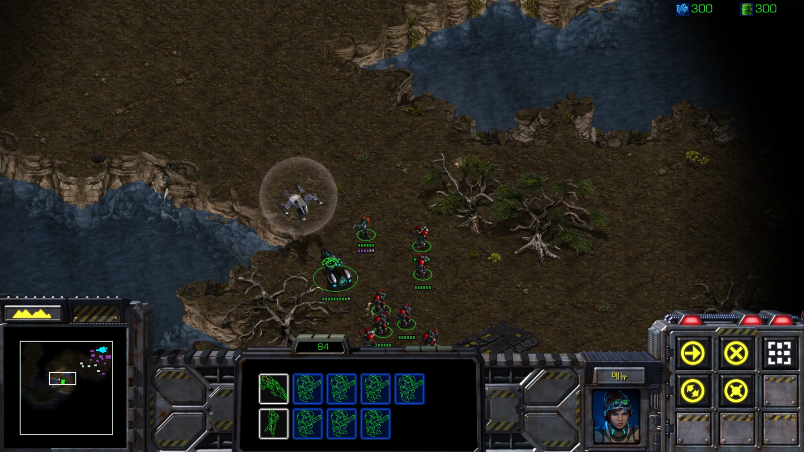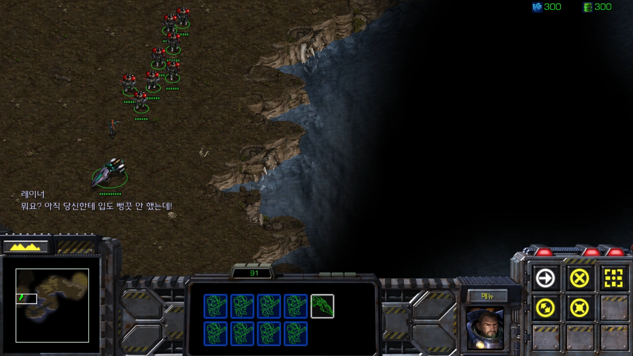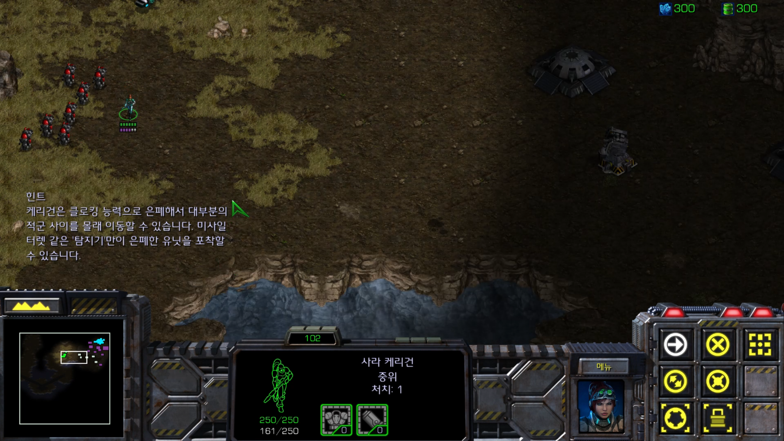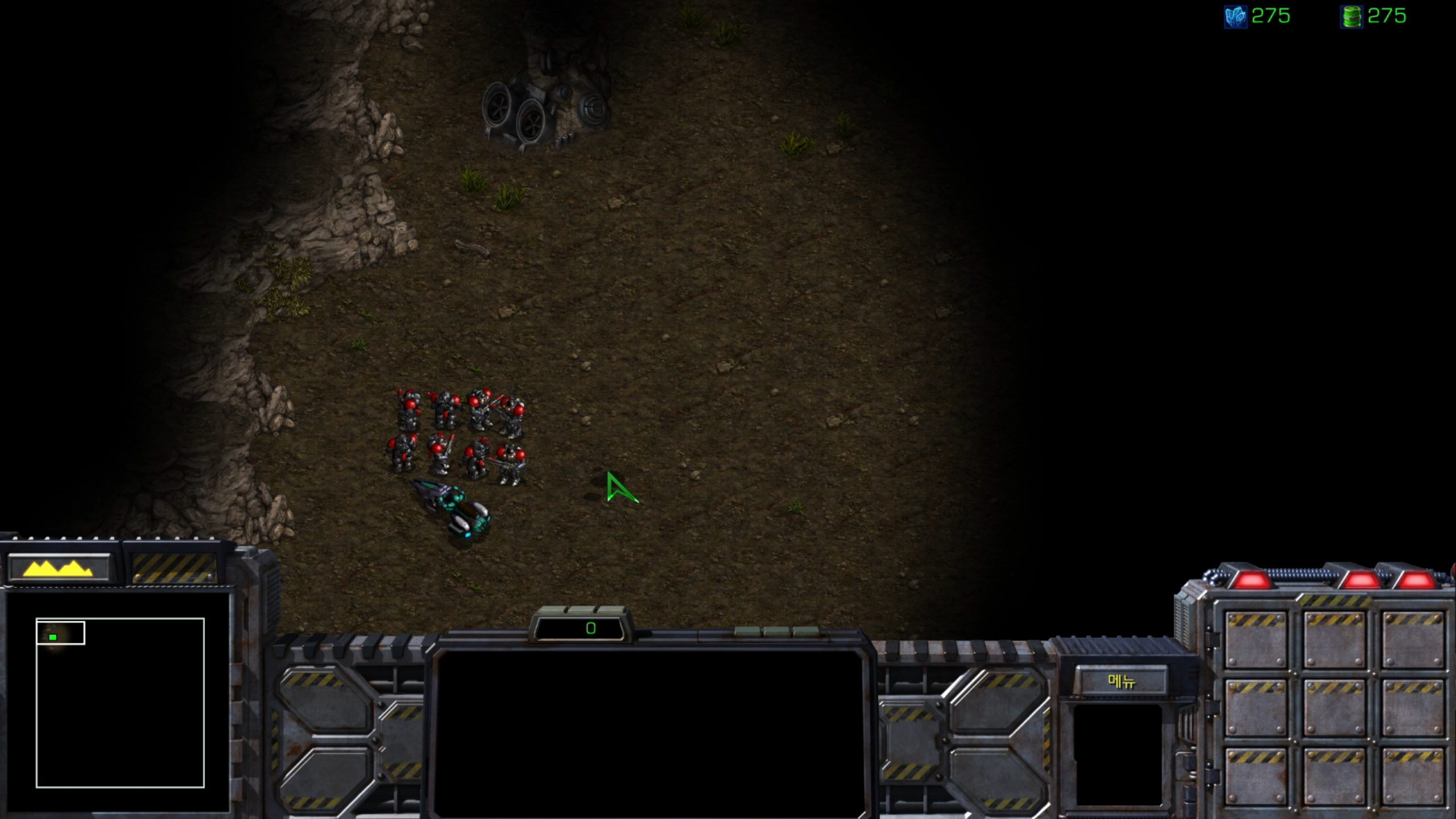 시작하면 레이너와 마린 8기가 주어집니다. 위에는 길이 없어 보이니 아래로 내려가 보겠습니다.