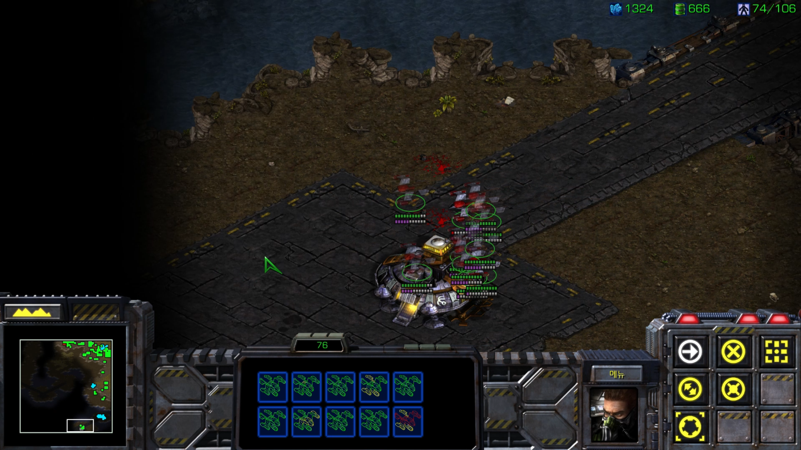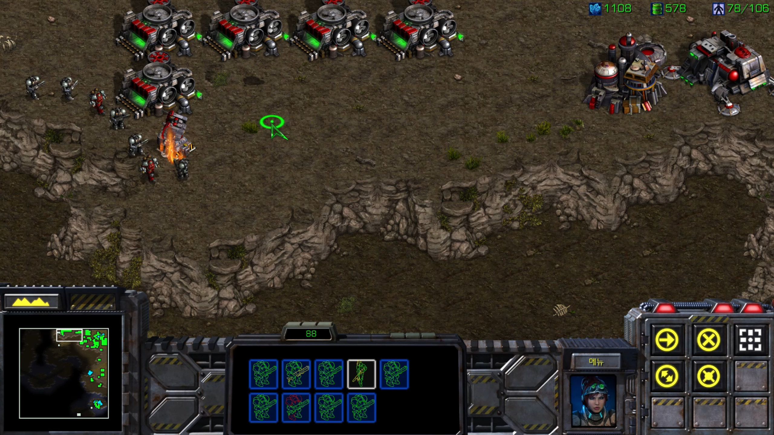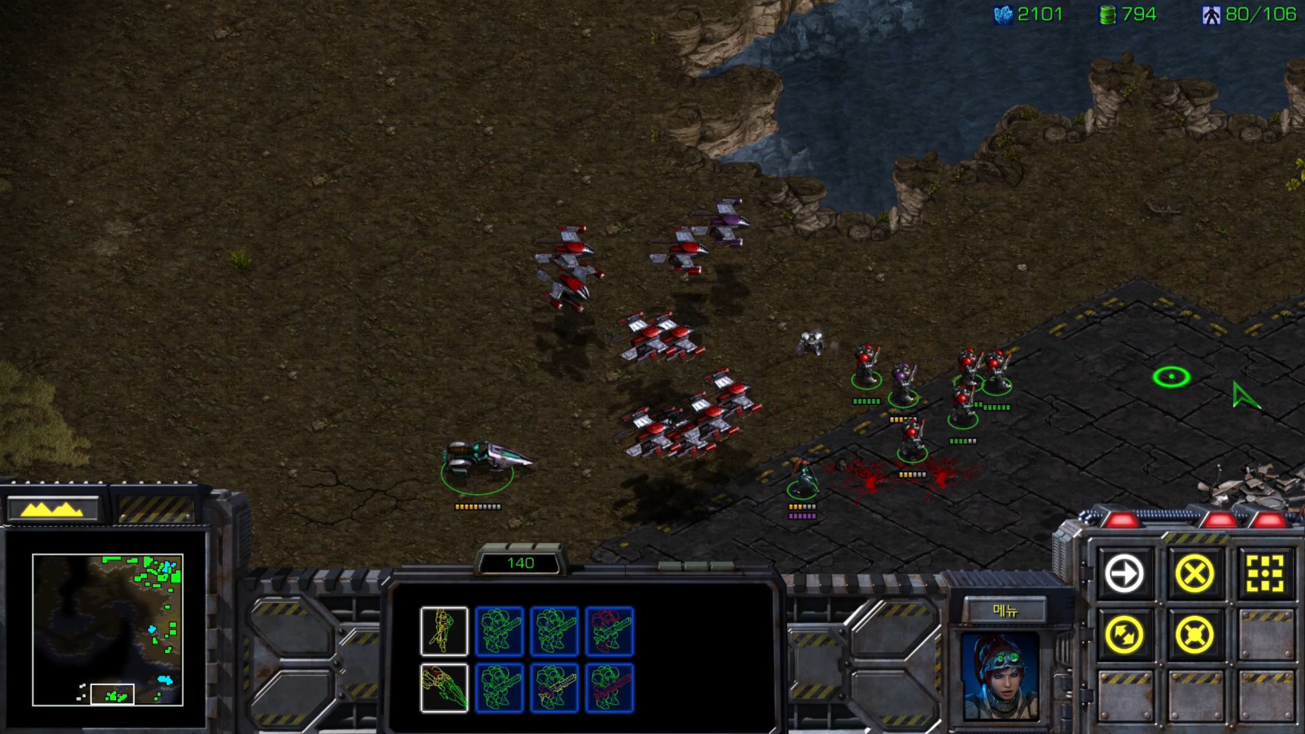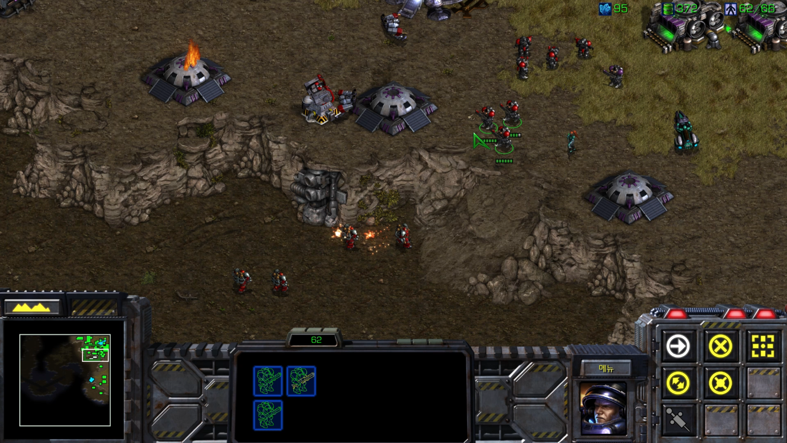 시작하면 레이너와 마린 8기가 주어집니다. 위에는 길이 없어 보이니 아래로 내려가 보겠습니다.