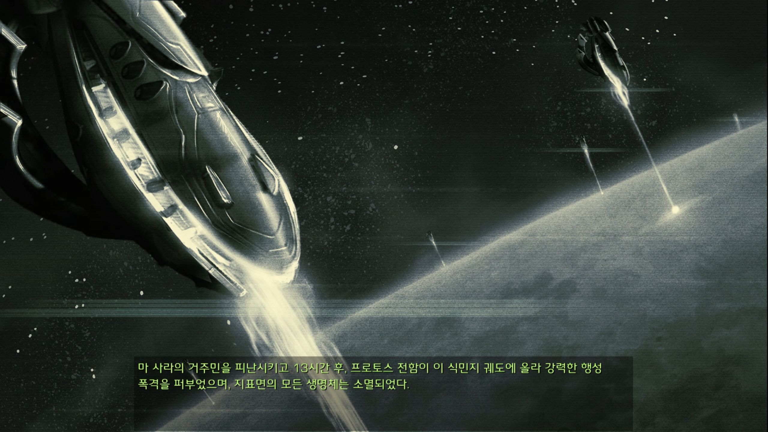 탈출 후 프로토스 전함이 마 사라 행성을 개박살 냅니다.