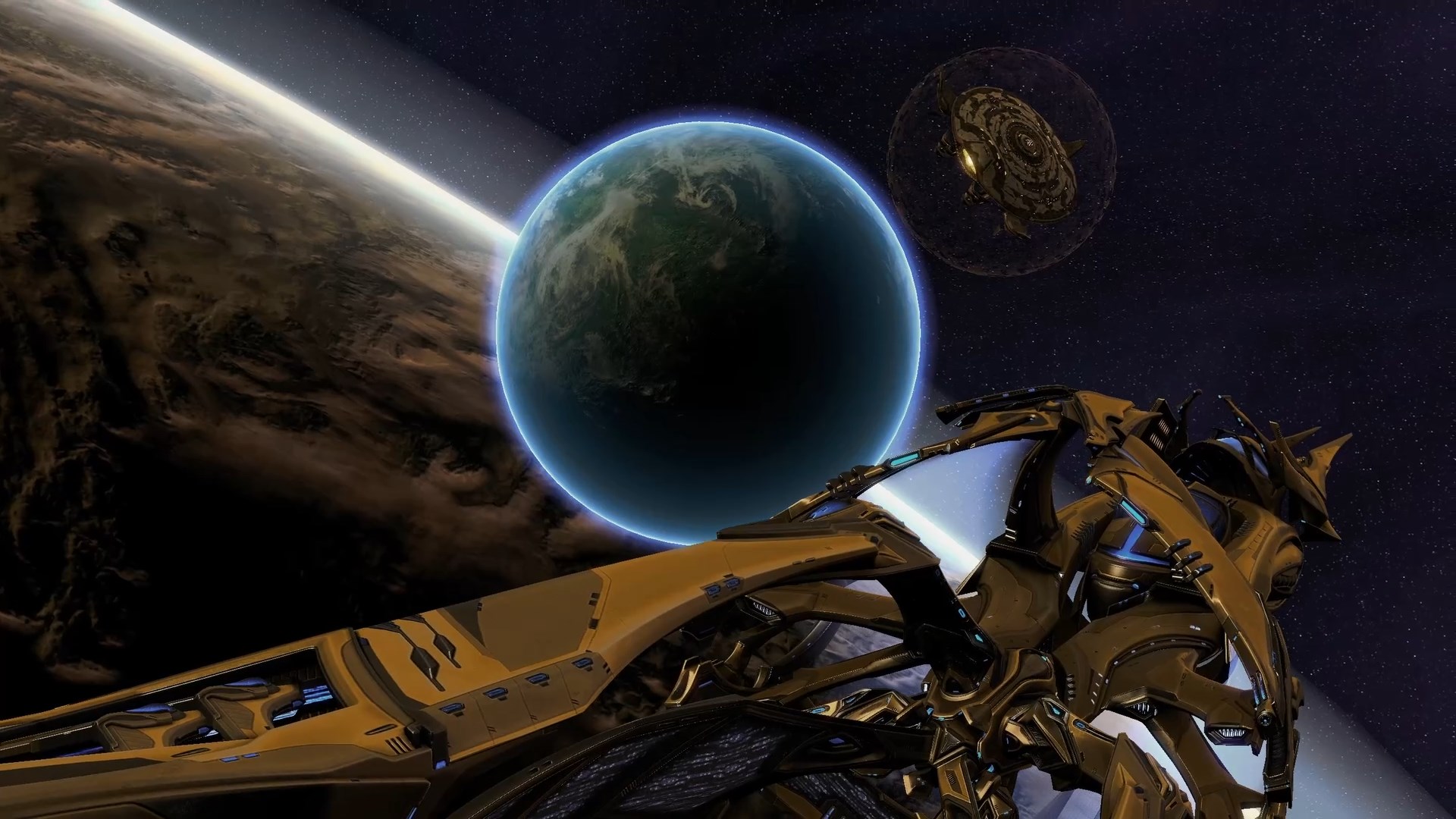 아르타니스 : 최초의 정화자들이 그들의 함선 사이브로스 안에 봉인된 채, 초록 위성 엔디온의 궤도를 돌고 있소.