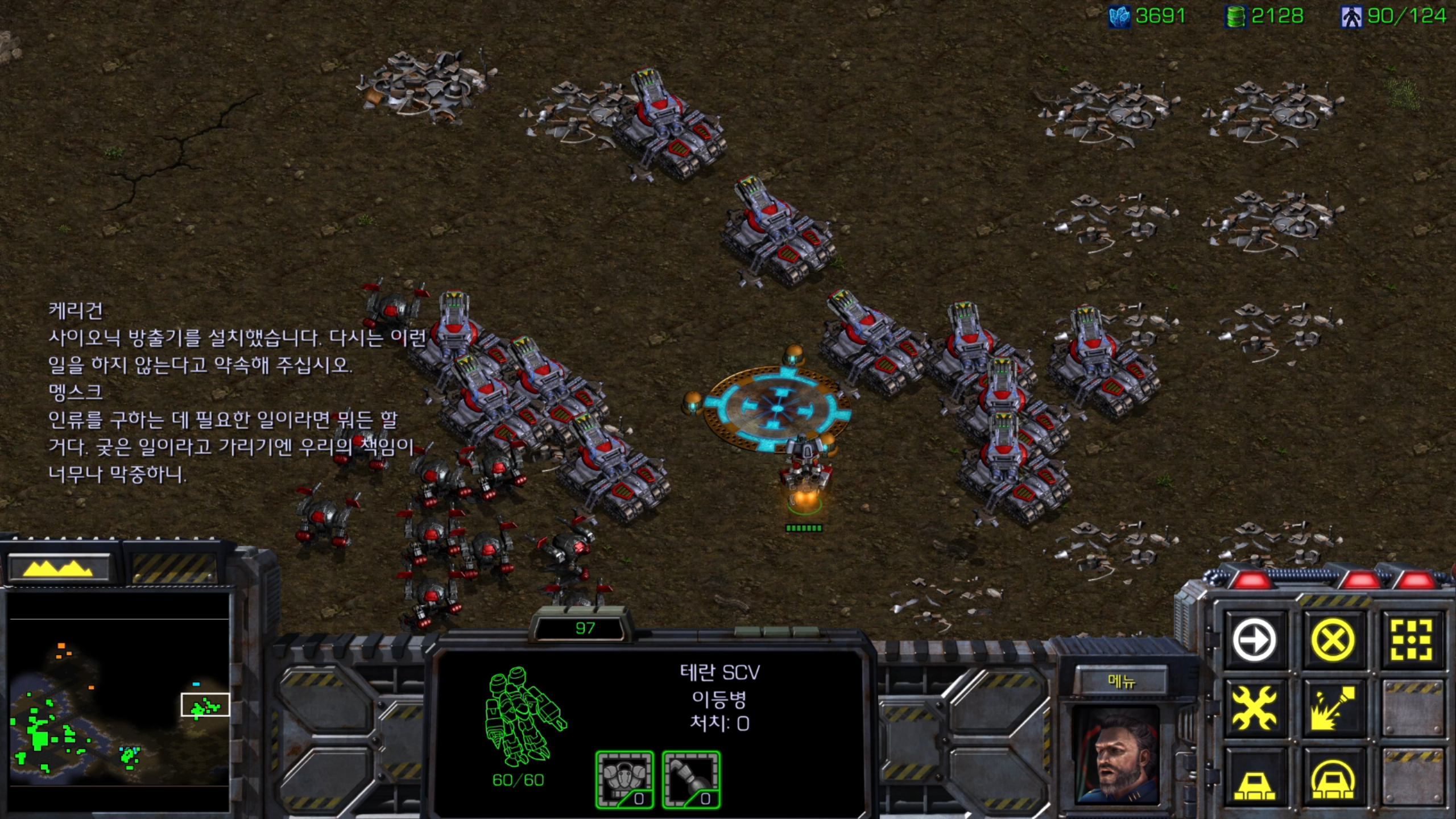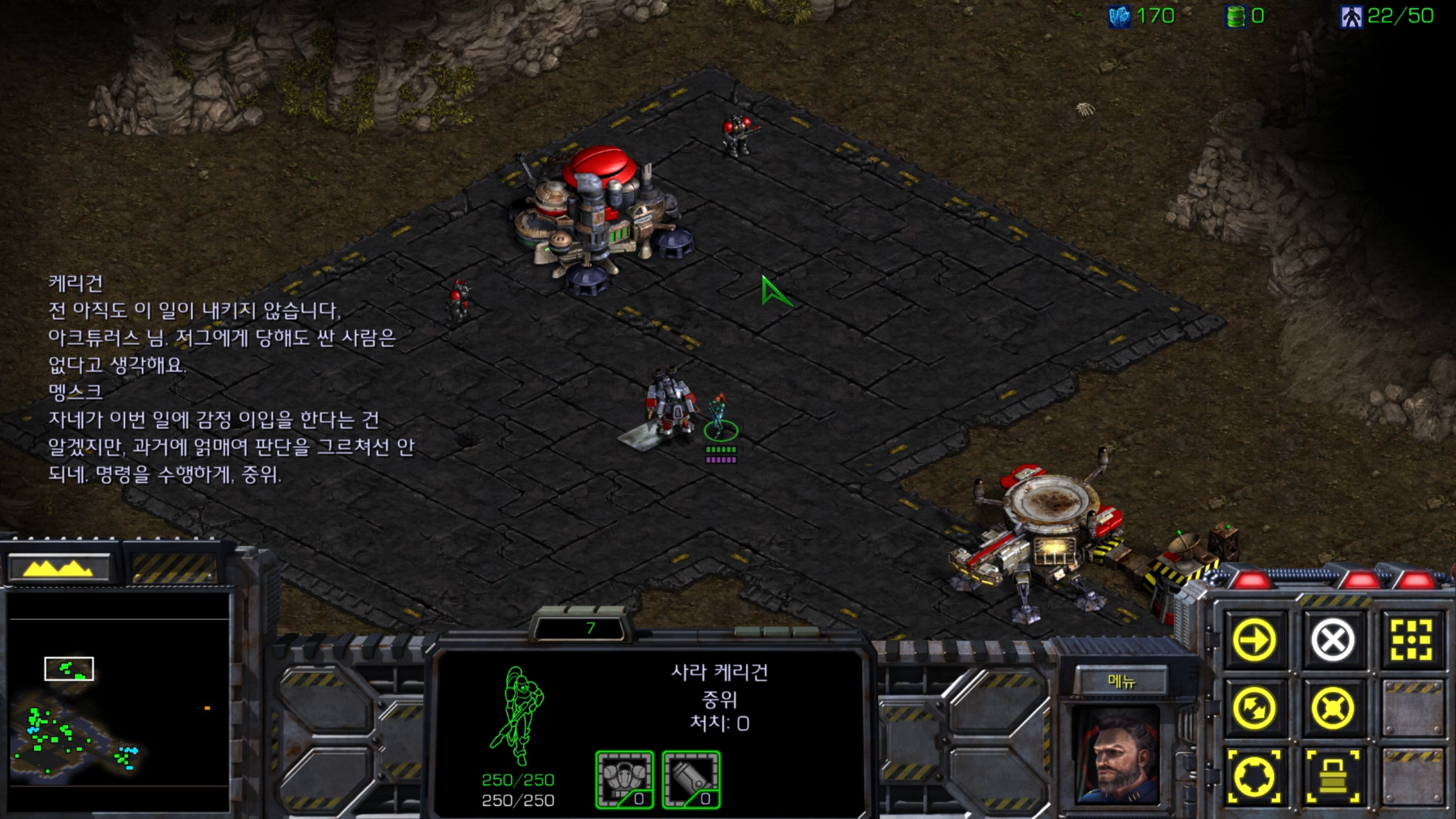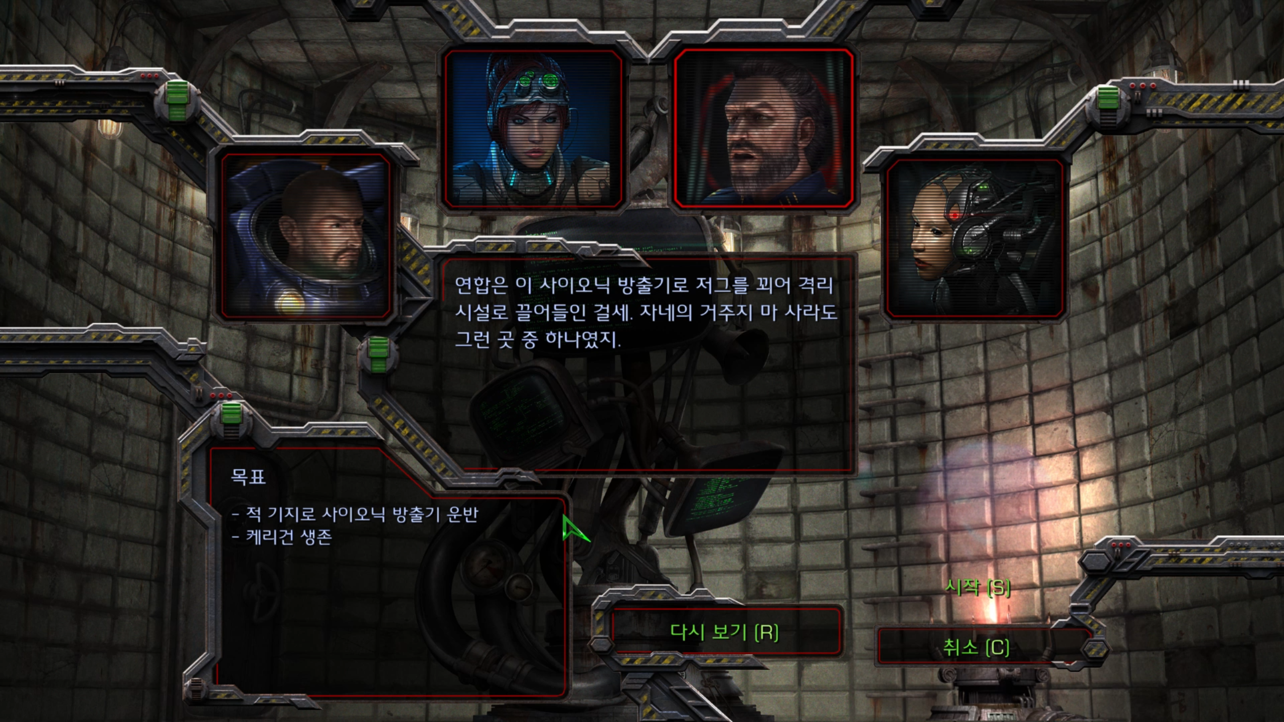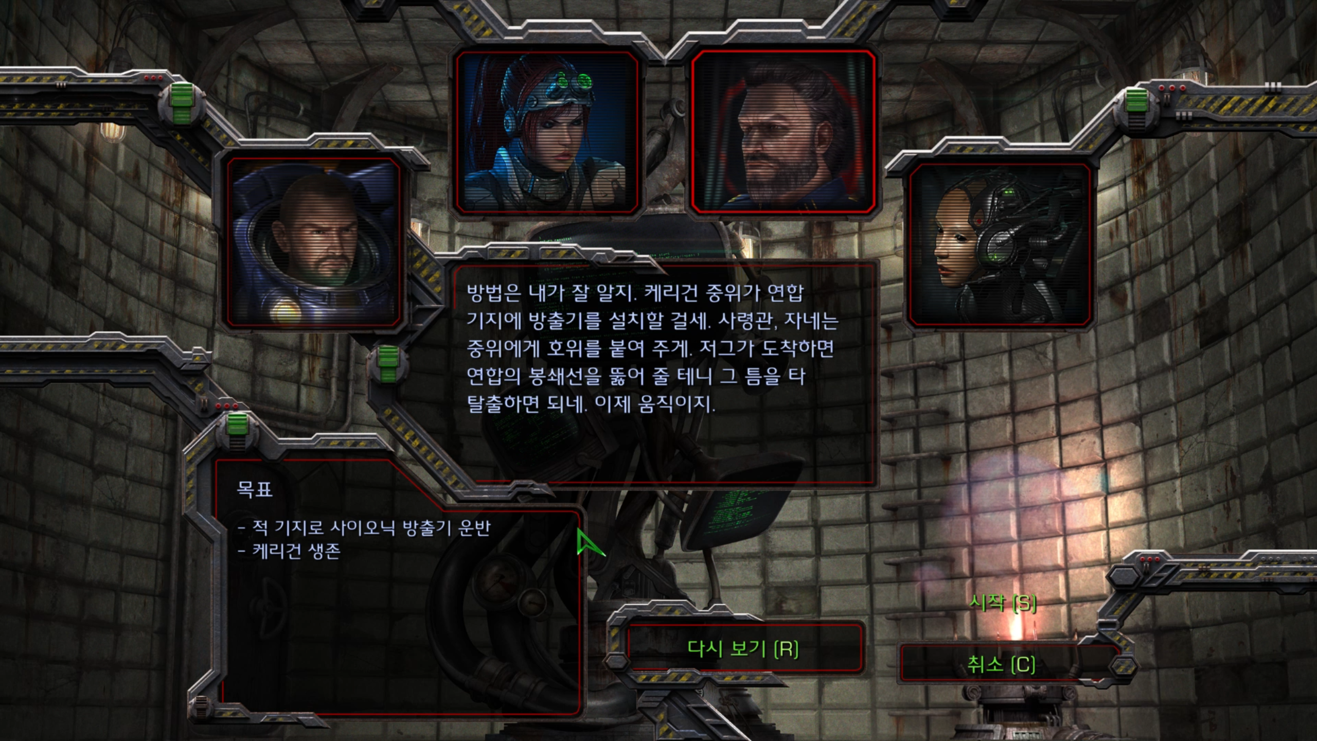 캐리건에게 연합기지에 사이오닉 방출기 설치를 지시하는 멩스크. 테란이 했던 짓을 똑같이 되돌려 줄 심산인가 봅니다.