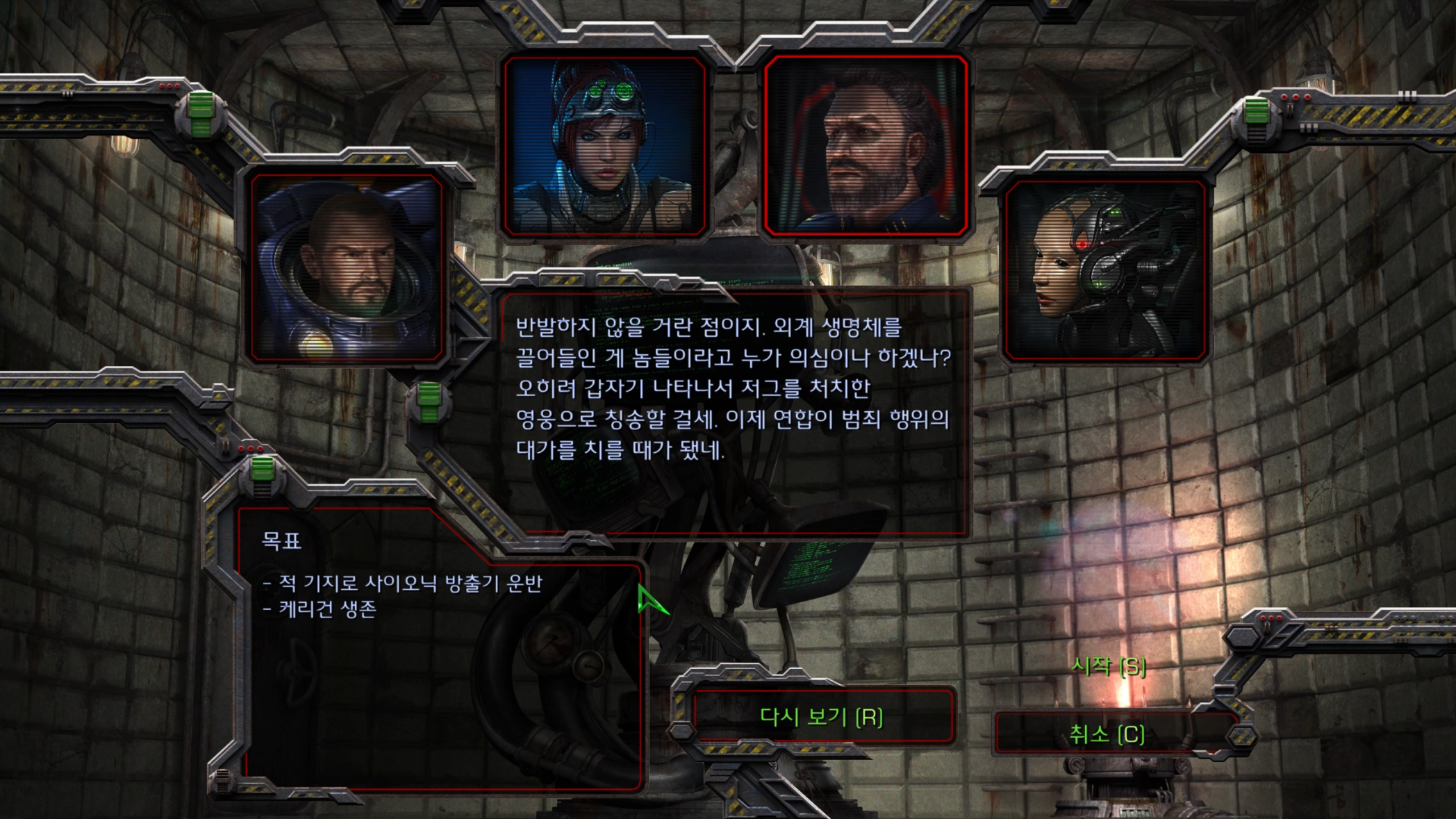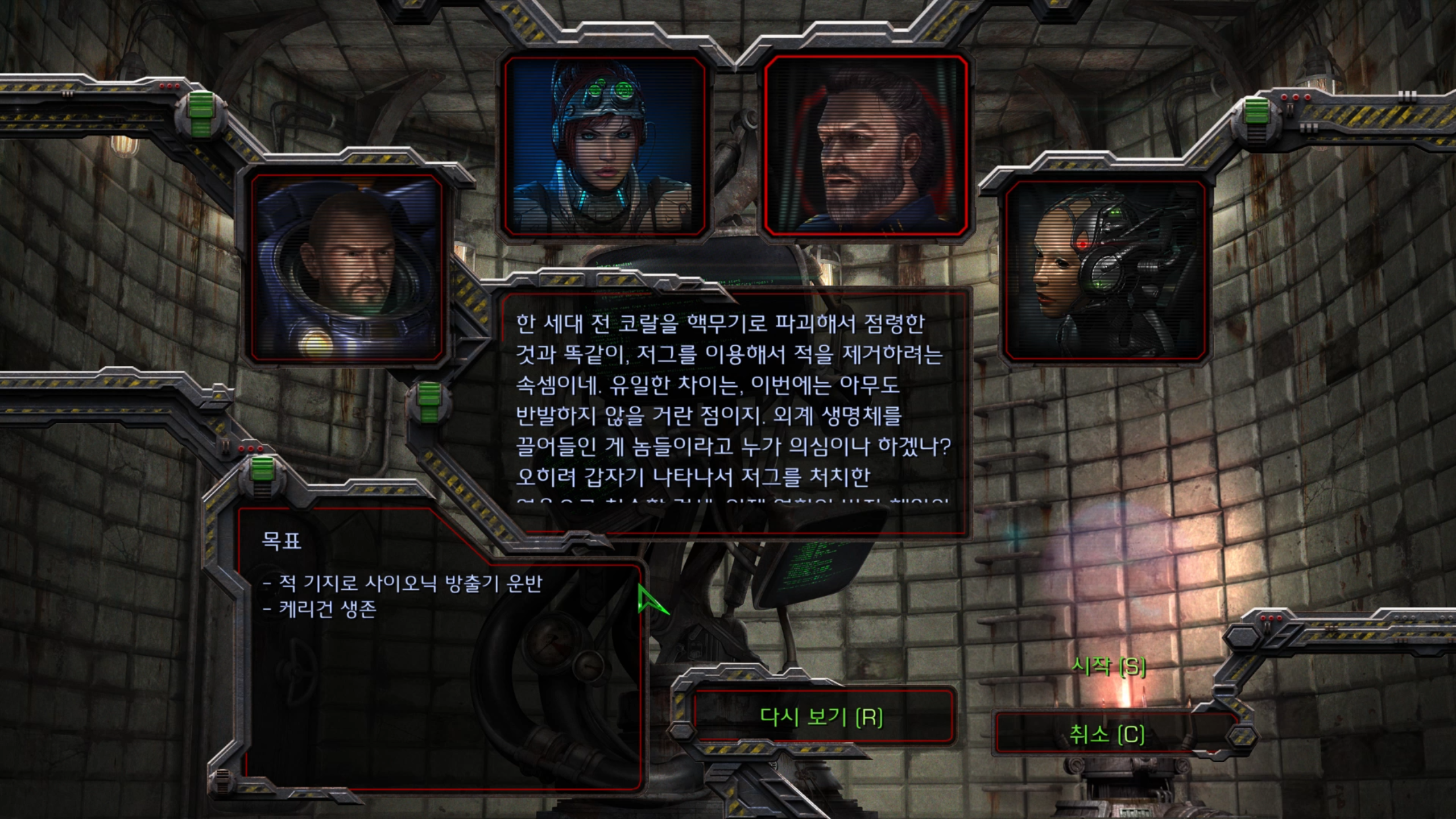 현재 멩스크는 테란연합을 박살내기 위해 수단방법을 가리지 않고 있고 레이너와 캐리건은 이러한 수단과 방법에 대해 불만이 많이 쌓여있는 상황입니다.