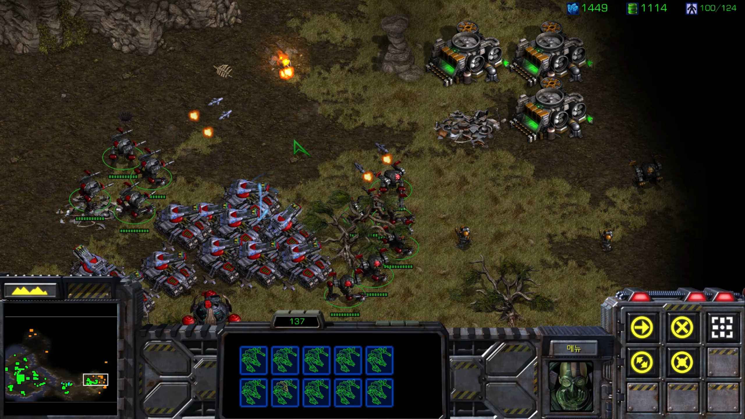 시즈탱크 한부대면 왠만한 지상군은 다 녹일겁니다. 다만 공중과 근거리에는 대응할 방법이 없기에 지금부터는 골리앗을 뽑도록 하겠습니다.