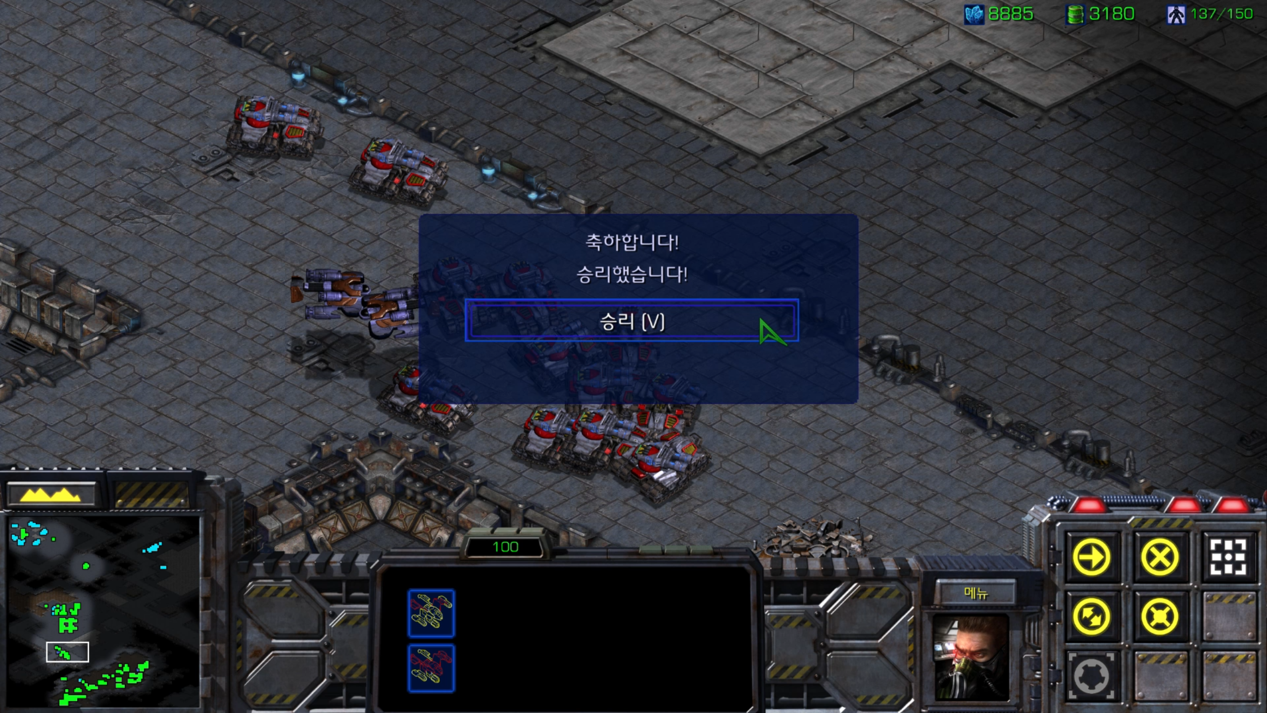 미네랄이 다 고갈되었군요. 빨리 상대 기지를 정리하고 멀티를 깔아야 할 것 같습니다.
