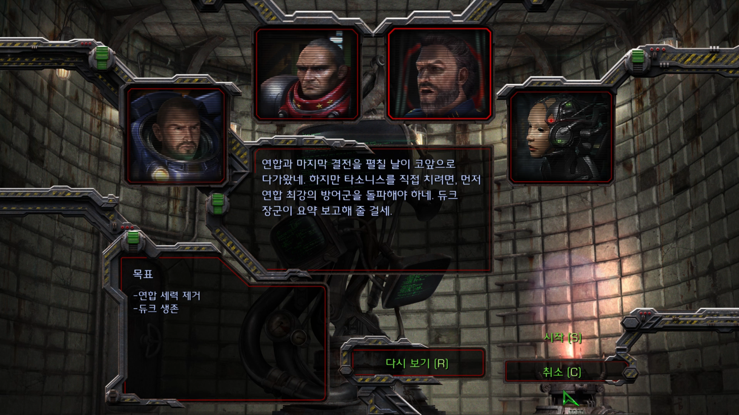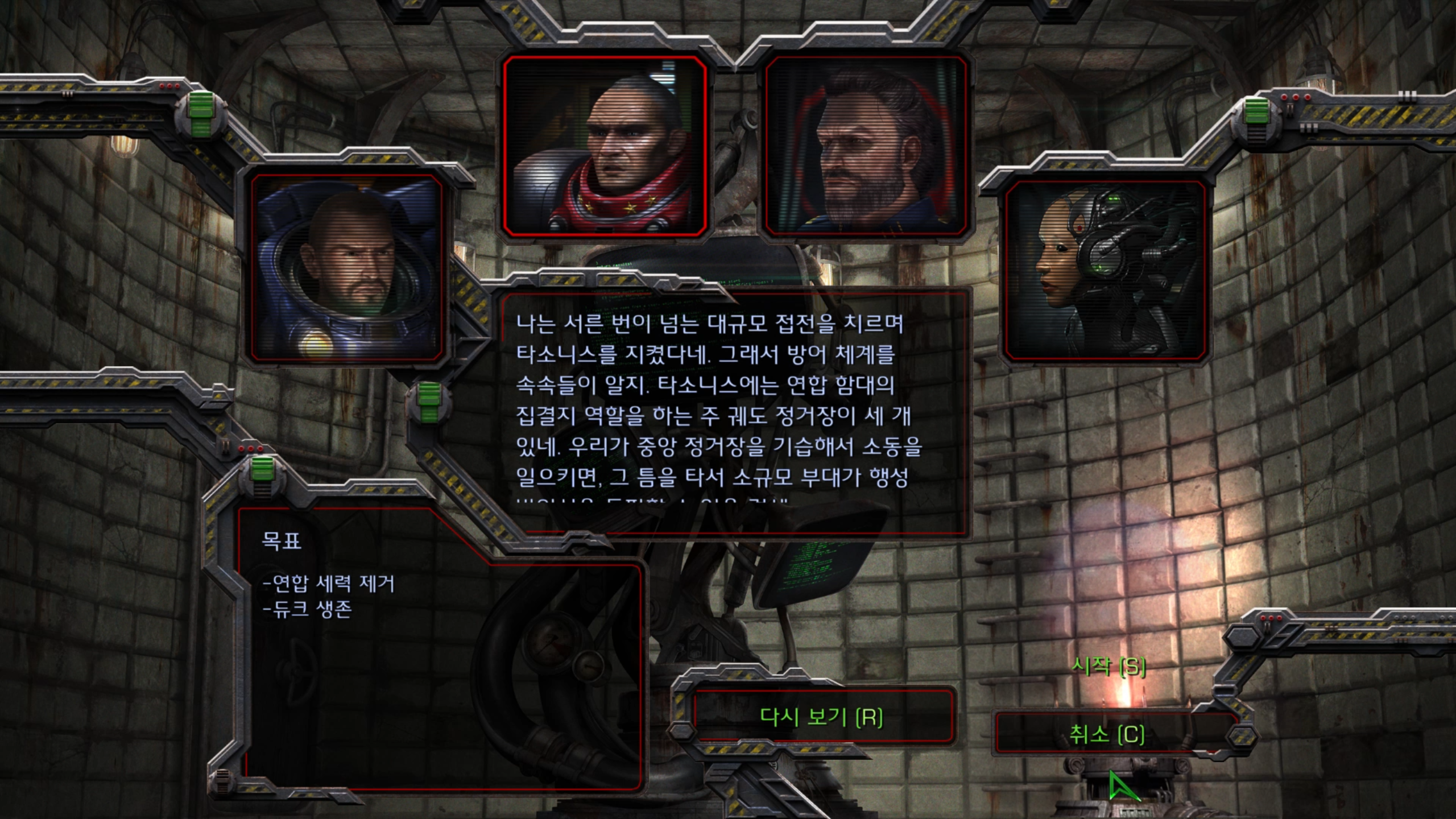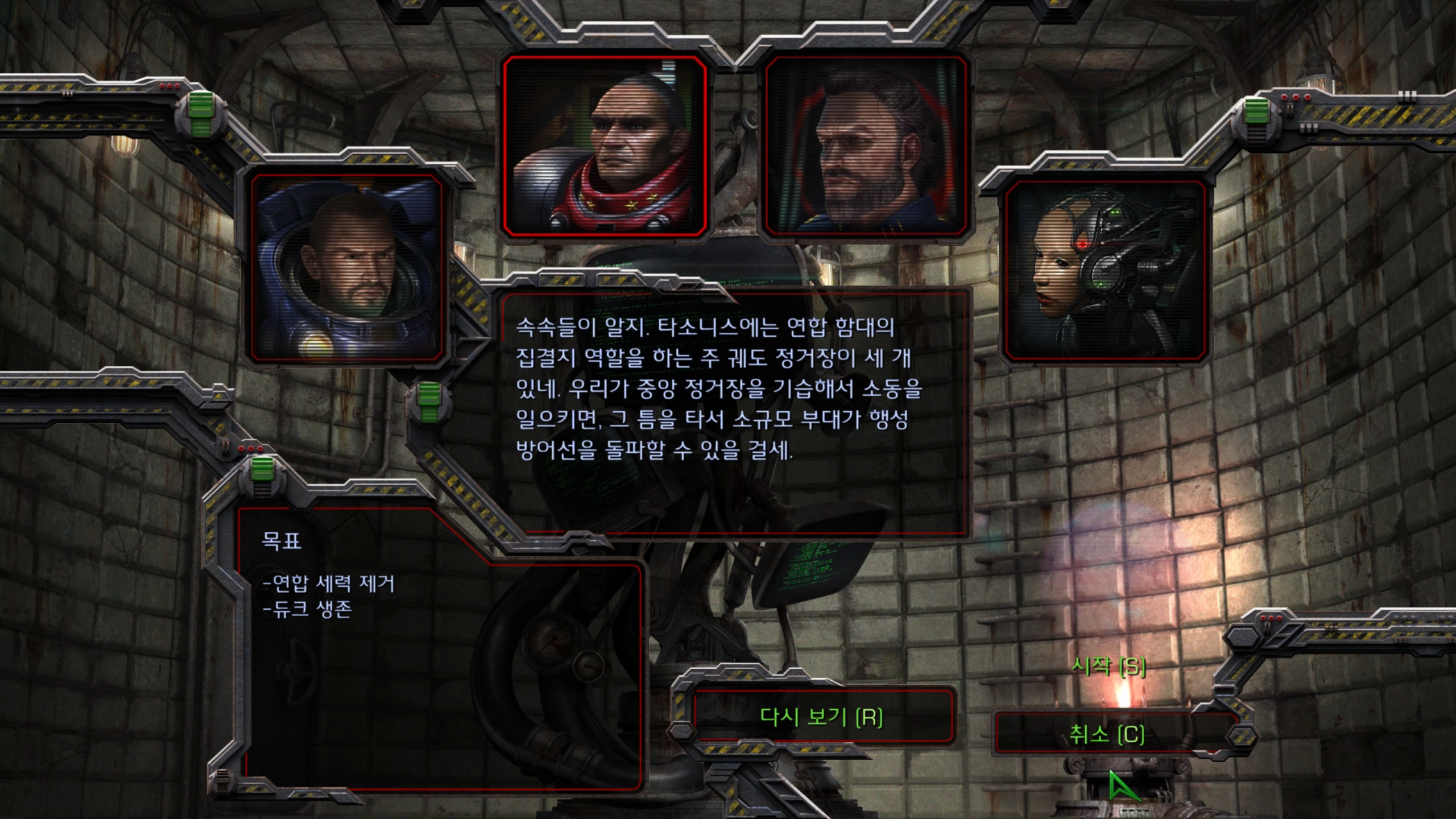 이번 미션은 테란 연합의 수도 타소니스 행성 상공에 있는 사령선 히페리온에서 시작합니다.