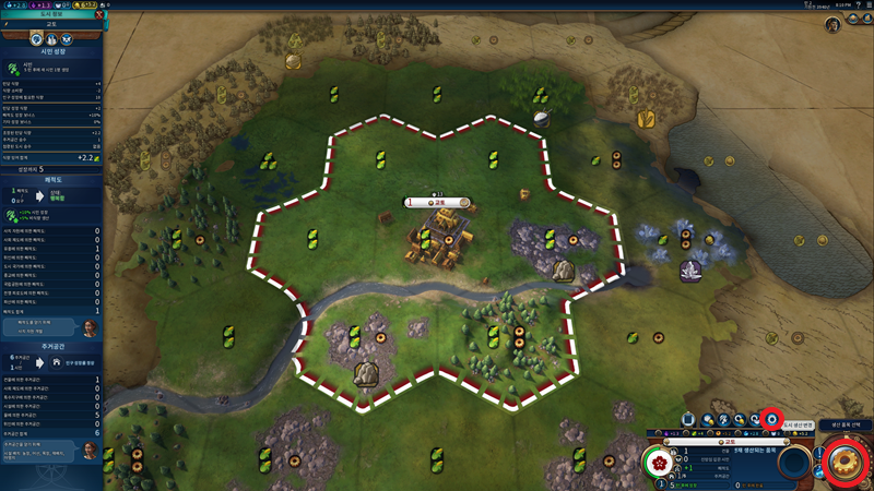 식량은 인구수에만 의존하지는 않고 여러 가지 방법으로 늘릴 수 있는 방법이 있습니다만, 이건 추후에 실제로 게임을 진행해 보면서 소개해 드리겠습니다.