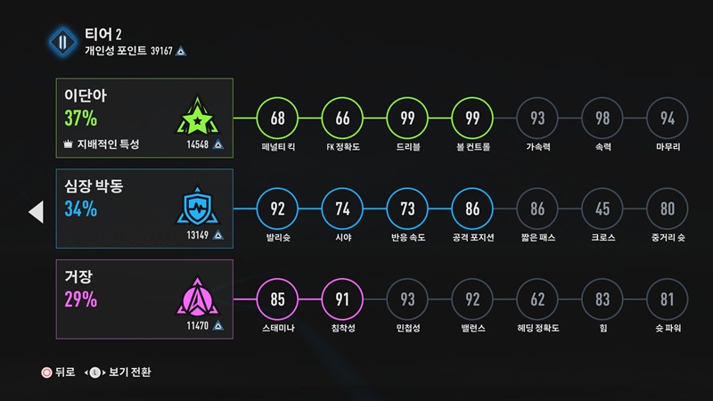 선수 커리어 모드에서 가장 중요한 컨텐츠는 역시 선수의 성장일 겁니다.
