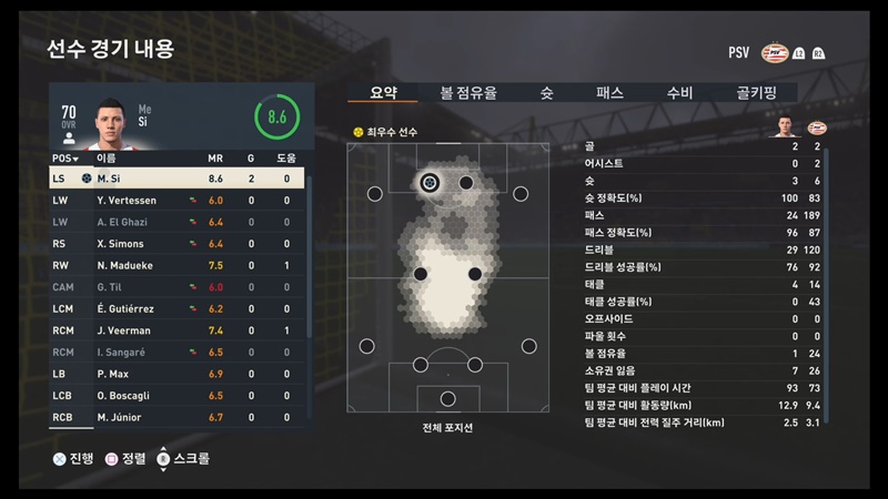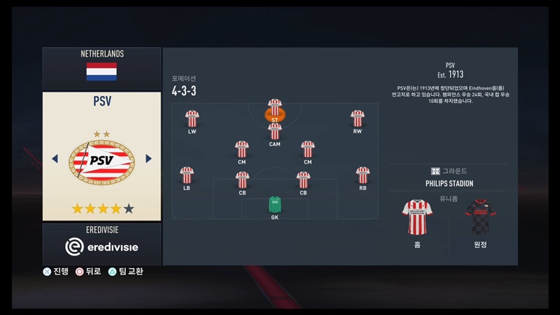사실 아약스가 더 끌렸는데 같은 4-3-3이지만 CAM이 아닌 CDM을 쓰기 때문에, 포지션 선택에서 PSV가 조금 더 자유롭지 않을까 싶었습니다.