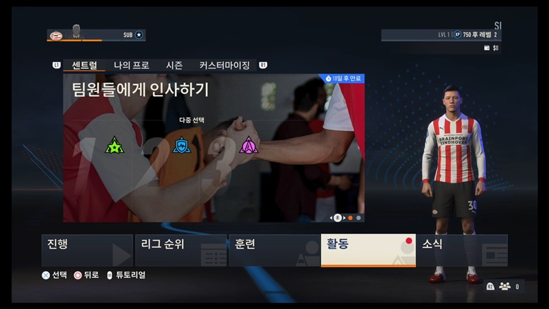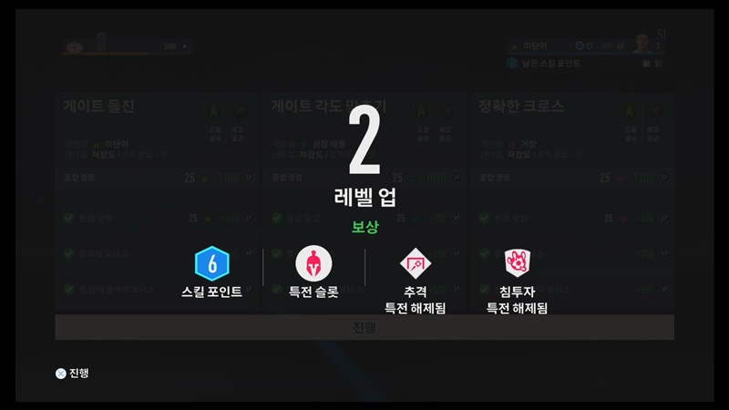 피파23에서는 훈련을 완료했을 시 레벨 경험치와 개인성 포인트를 얻을 수 있어요.