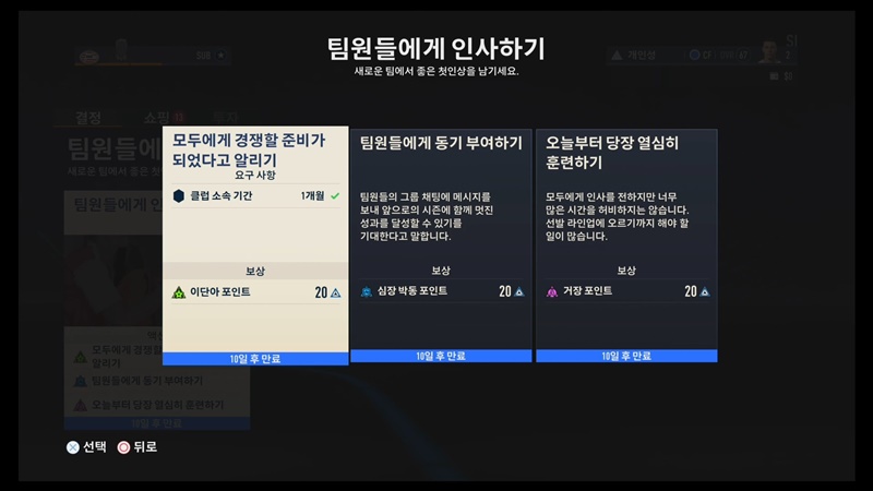 아직은 스탯도 낮고 기대치가 없어서 감독의 요구사항이 간단한 편입니다.