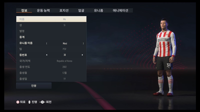 등번호 변경은 커스터마이징에서 진행하시면 되겠습니다.