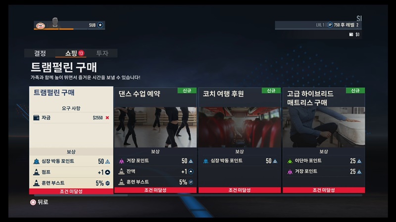 활동에서는 게임 중간 중간 다양한 이벤트가 발생하고 주급을 사용하여 쇼핑이나 투자를 할 수 있습니다.