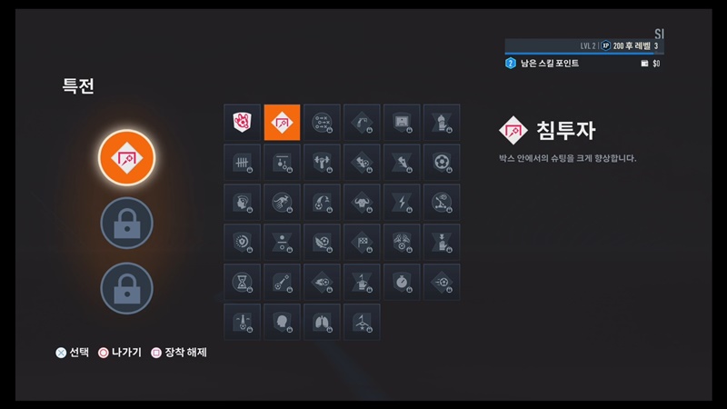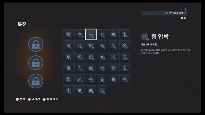 특전은 일종의 패시브 스킬 비슷한 개념으로 레벨이 올라가면 하나씩 해금됩니다.